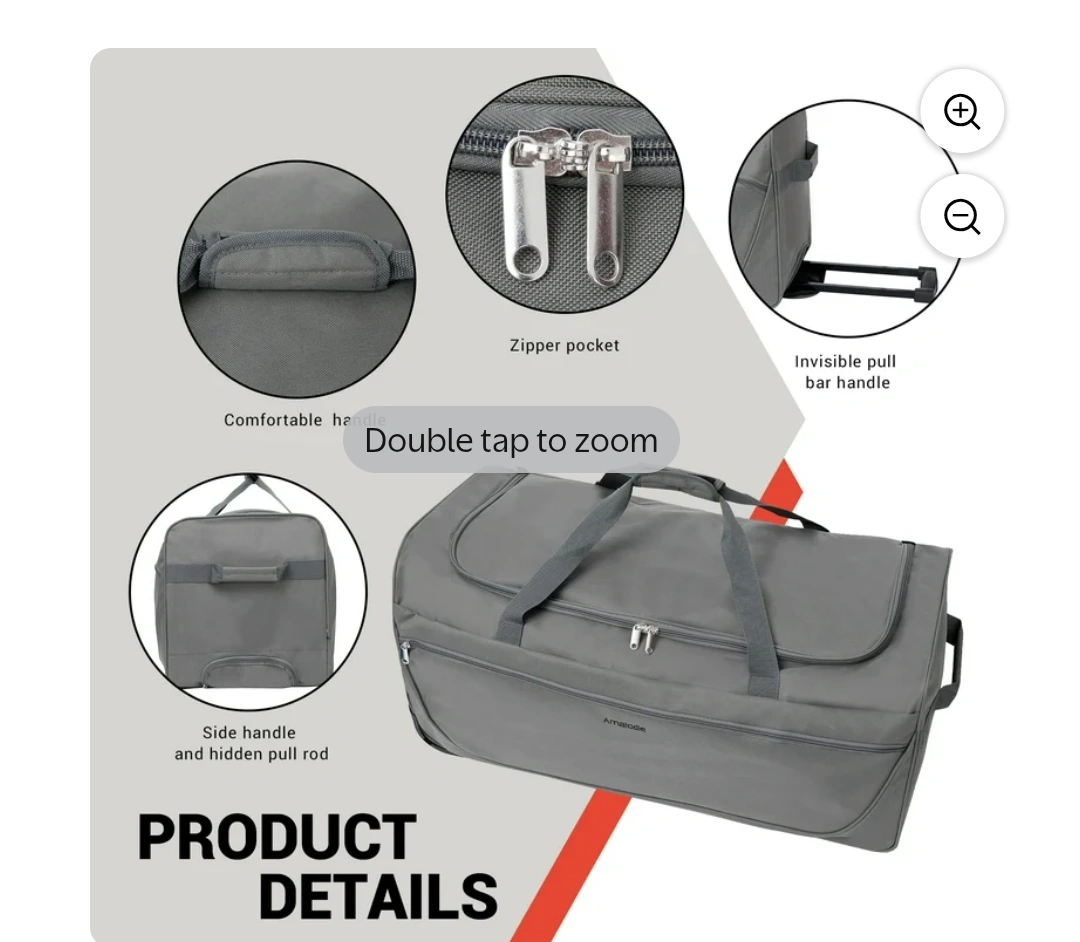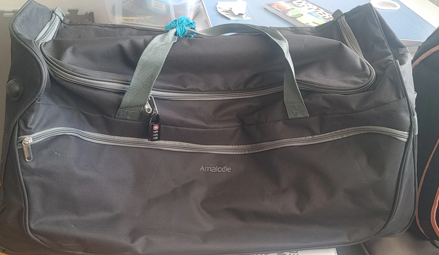 30 inch travel bag see photos .... pickup only Thorncliffe park dr Large capacity rolling duffel bag. Grey colour. Features a zippered pocket, comfortable handles, and hidden pull rod. Measures 76cm x 35.5cm x 34cm. Great for travel.