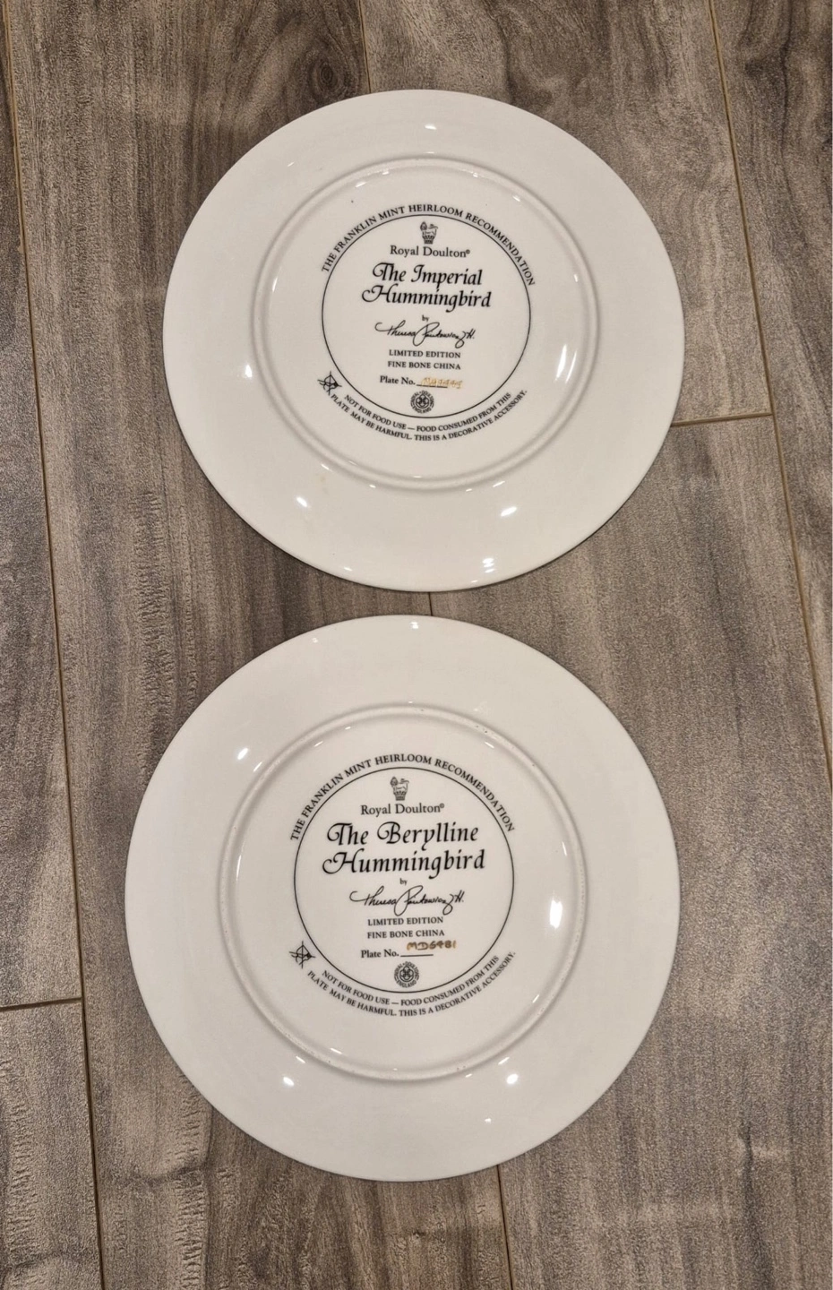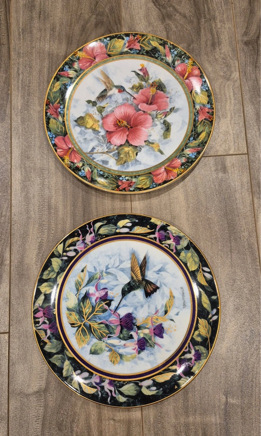 Two beautiful collector plates. Limited edition. Features hummingbirds and flowers. Decorative plates, not for food use.