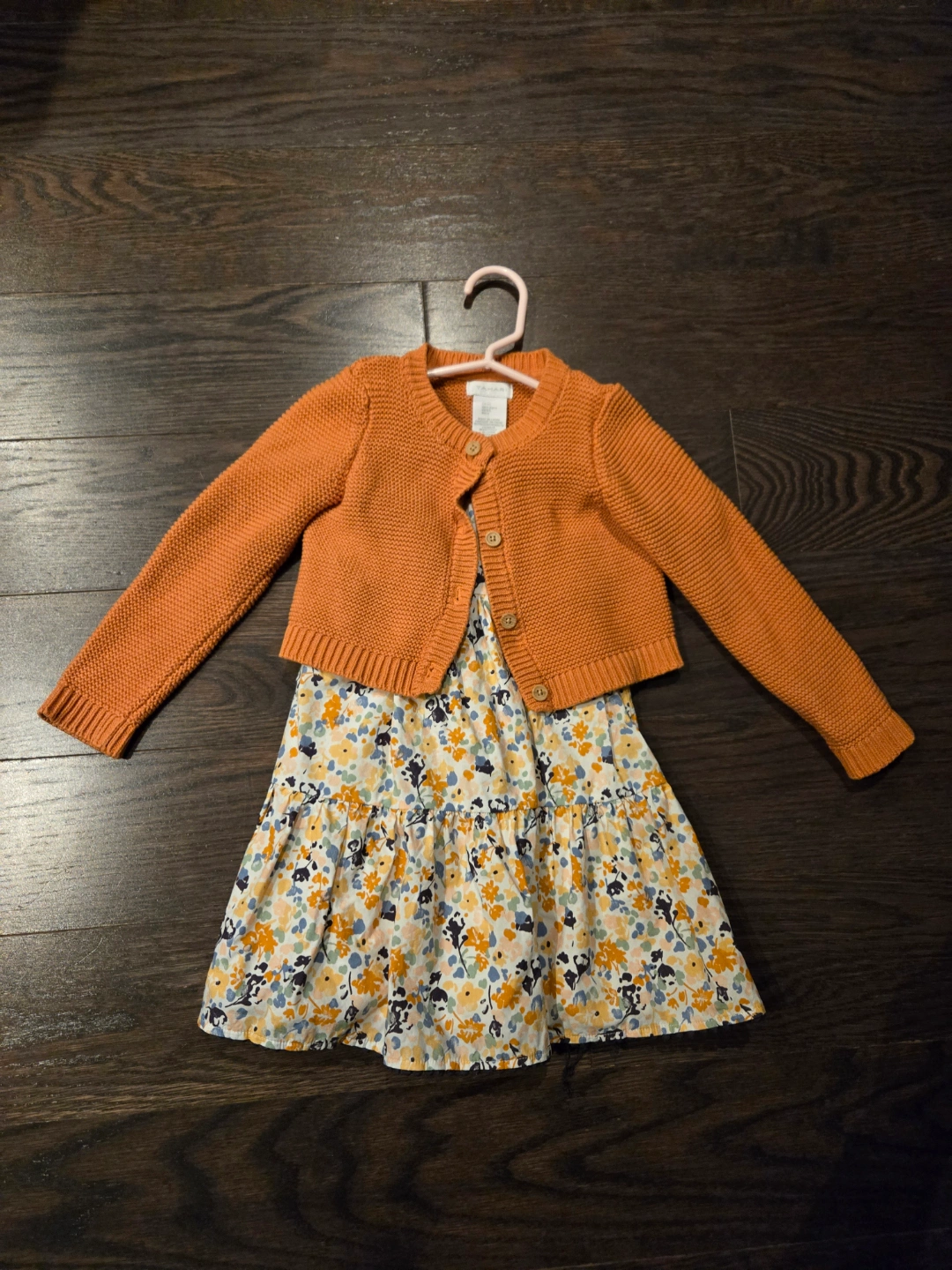 Includes a burnt orange cardigan sweater and a tiered floral sundress. Perfect for spring or summer. Only used once for a photo shoot last year.