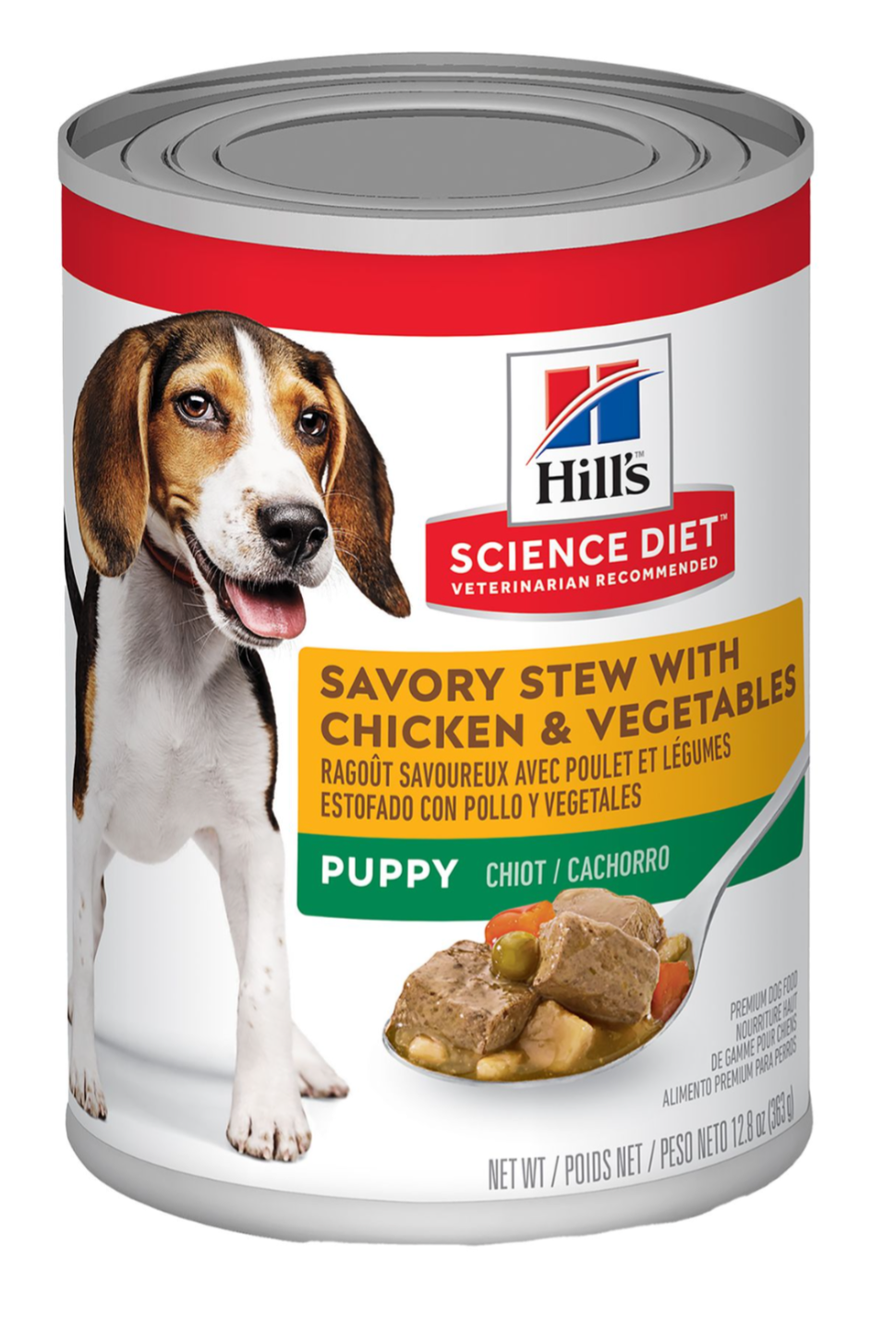 12.8 oz can of Hill's Science Diet puppy food. Savory stew with chicken and vegetables. Veterinarian recommended. Best before 01/2026. Just the one can, unopened, perfect condition.