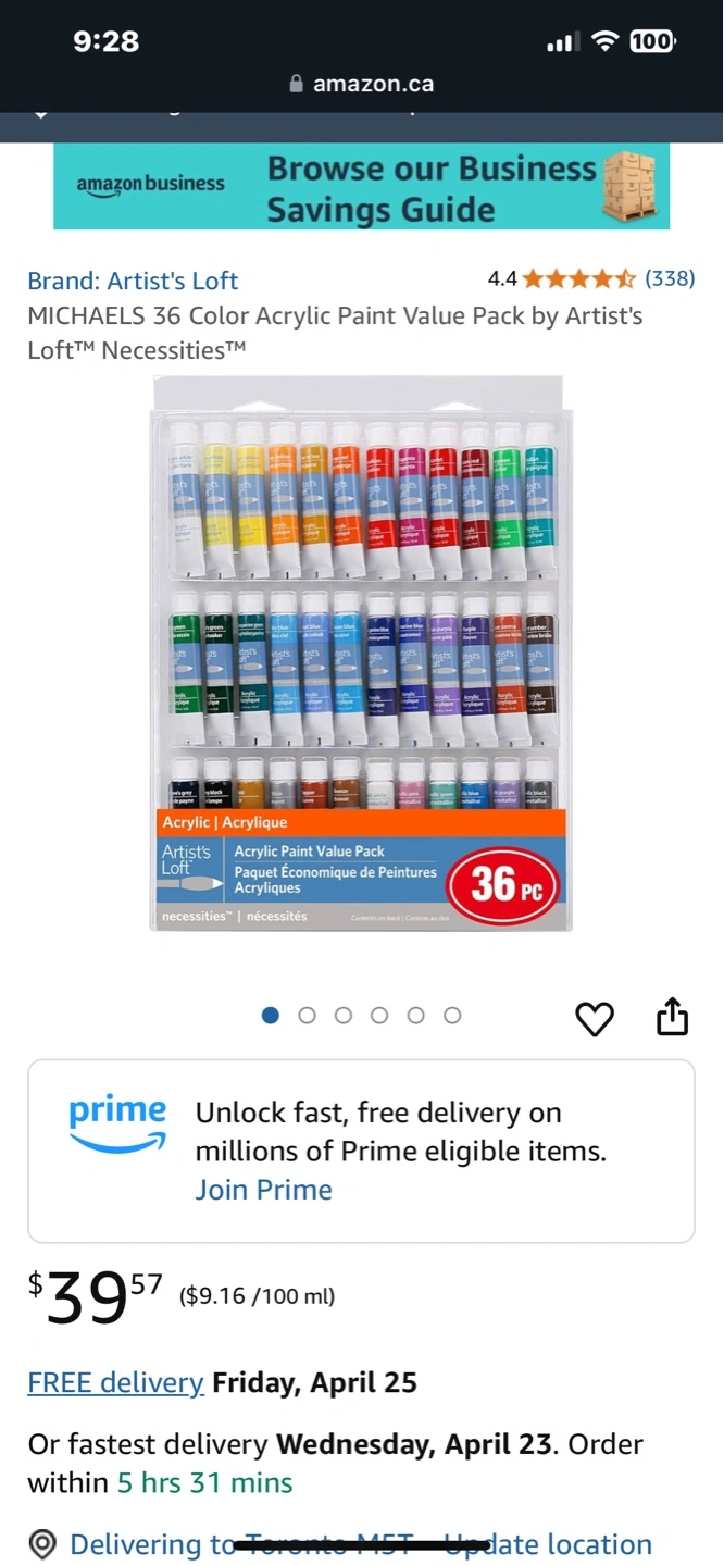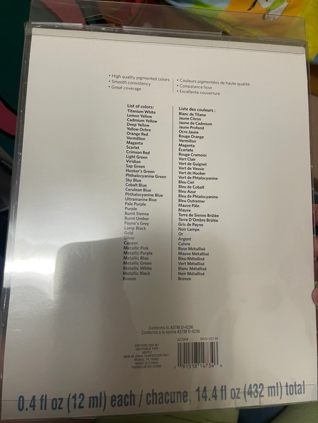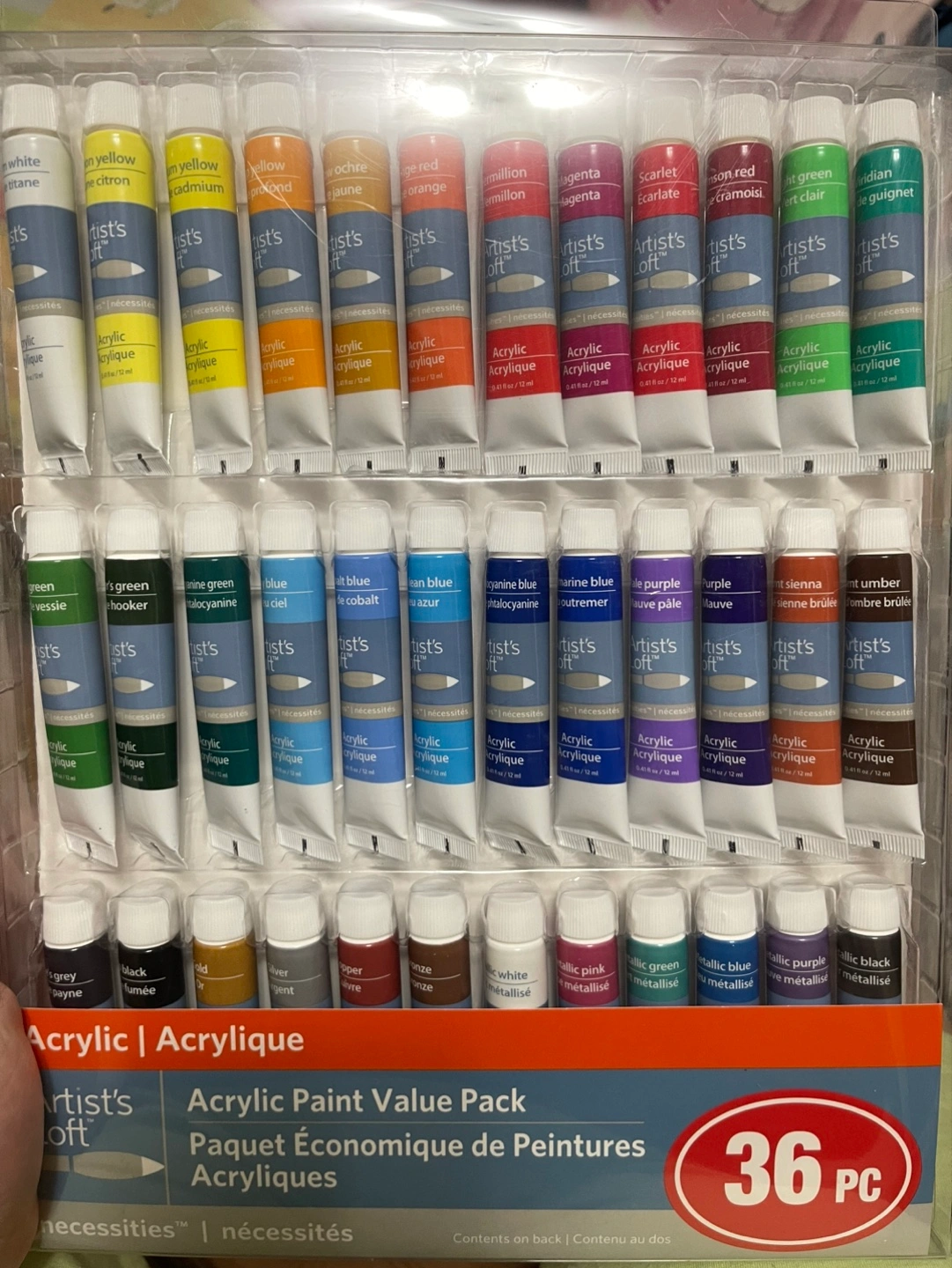 64336 tubes of acrylic paint. Great for students and hobbyists. Variety of colours. Value pack. Pick up Dundas and Spadina.