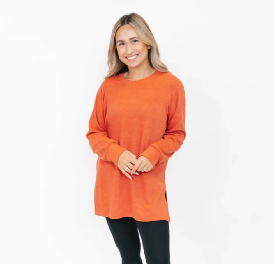 Smash & Tess short Chelsea tunic sweater in a Sienna orange hue