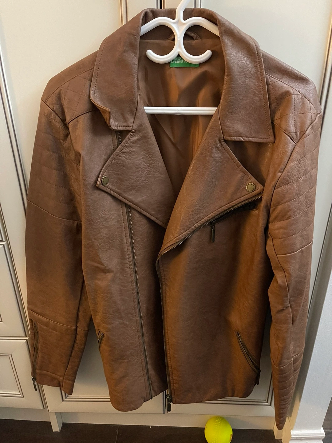 Selling a gently used United Colors of Benetton faux leather jacket in a rich rustic brown. Size Medium. Still in great condition – no rips, stains, or damage. Super stylish with zip details and a classic biker-style cut. Perfect for casual wear/ fall or even layering up on cool days. Only selling because I don’t wear it much anymore. Pickup or meet-up available. Message if you’re interested!