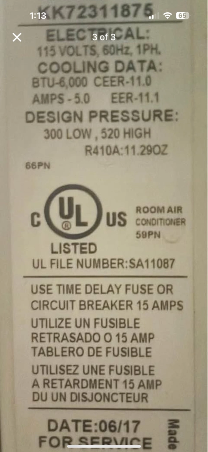 Used Frigidaire window air conditioner. Cooling and fan functions. Model number K72341875. UL Listed. Includes power cord. Good working condition.