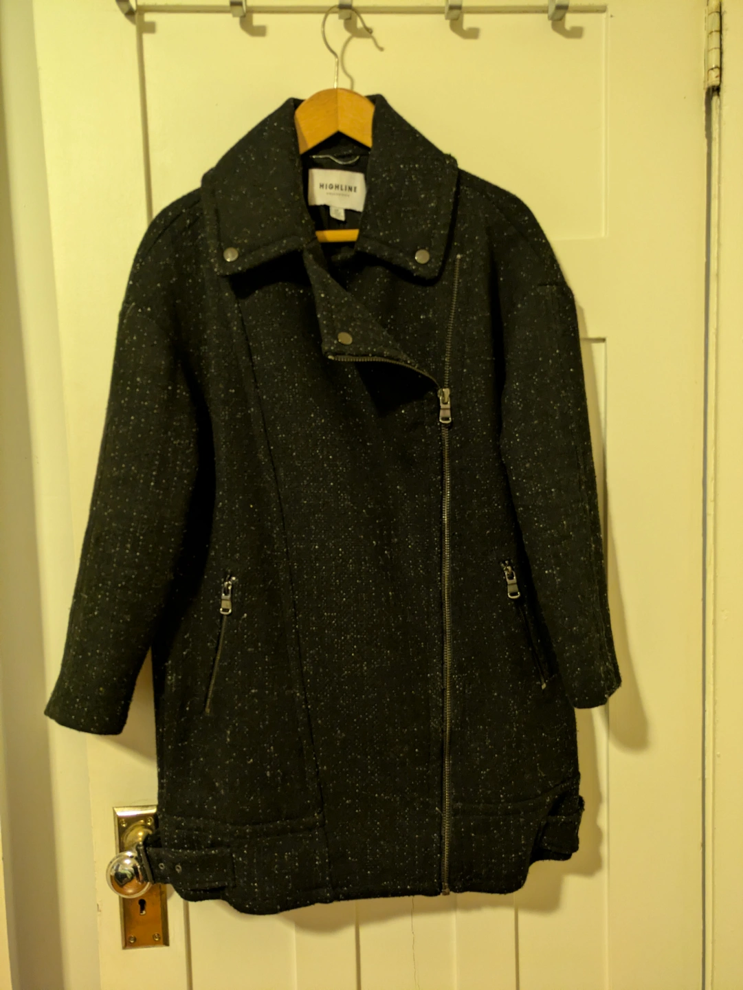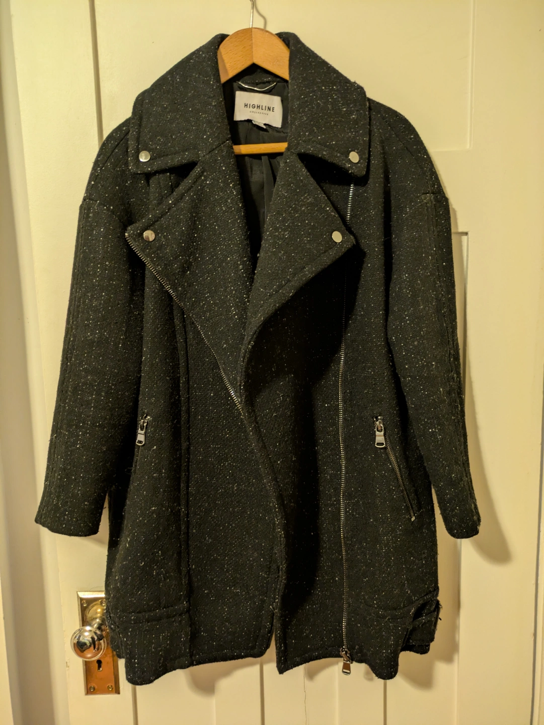Womens black tweed coat by Highline Collective Buckle detailing at the hem. Size Small but fits Medium as well as it's meant to be oversized.. Excellent condition.
