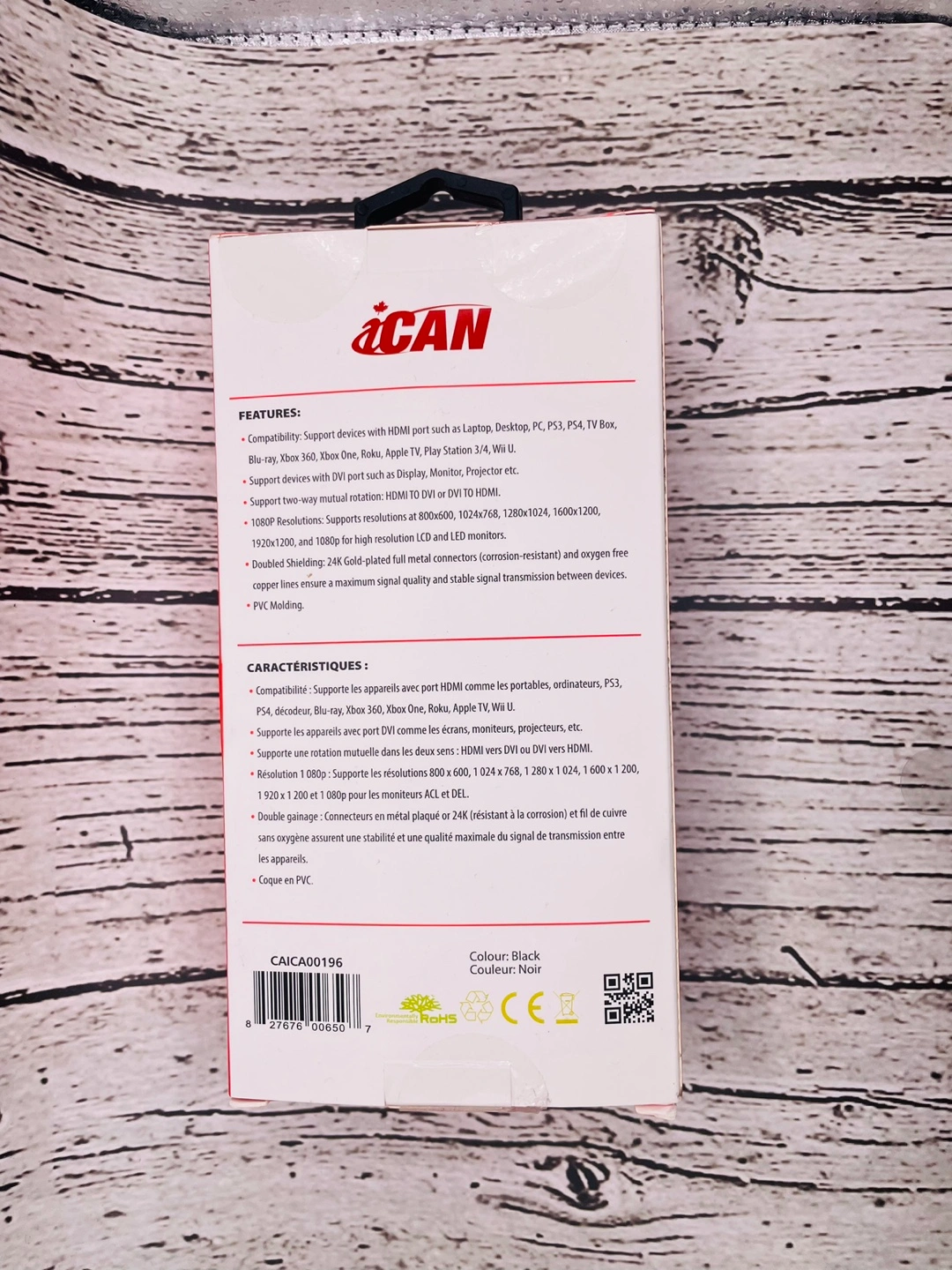 Buy & SelliCAN HDMI to DVI CableiCAN HDMI to DVI Cable$9Brand new, HDMI to DVI cable. Supports resolutions up to 1080p. Double shielding for optimal signal quality. Male to male connectors.ConditionNewBrandiCAN2 chats·2 favorites·23 viewsSELLERRobinErin Mills25532 reviewsWHERE TO MEETCheck Location