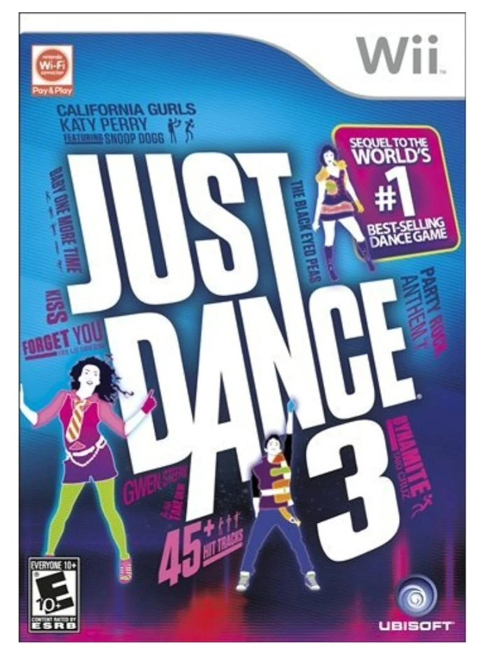 2010's best-selling dance franchise returns with the highly anticipated third iteration, Just Dance 3. Dance to over 40 of the hottest hits from yesterday and today, spanning a wide range of genres that are sure to please any music fan. Using only the Wii Remote, Just Dance 3 is the perfect dance game for any age or dance ability, so it's easy for anyone to join the movement! With a variety of all-new gameplay modes, tracks that allow up to 8 players at once, and innovative cardio training options, Just Dance 3 was made to bring the party and keep America dancing!