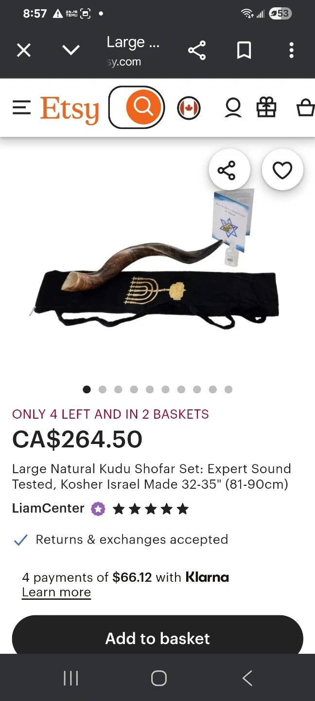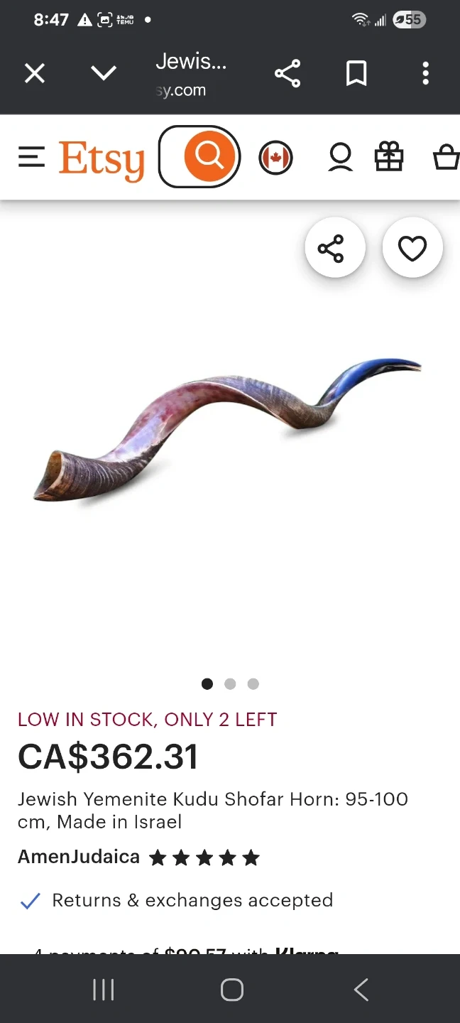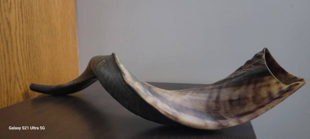 Authentic ram's horn shofar. Beautiful dark colour. Used, but in good condition. Great for religious ceremonies or collections.