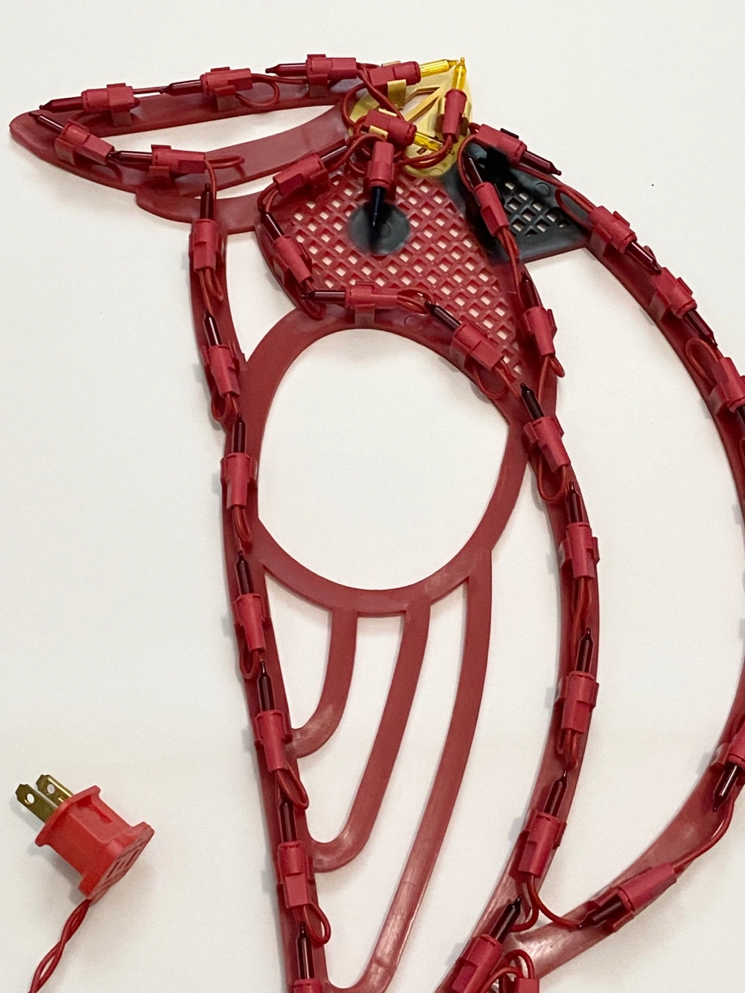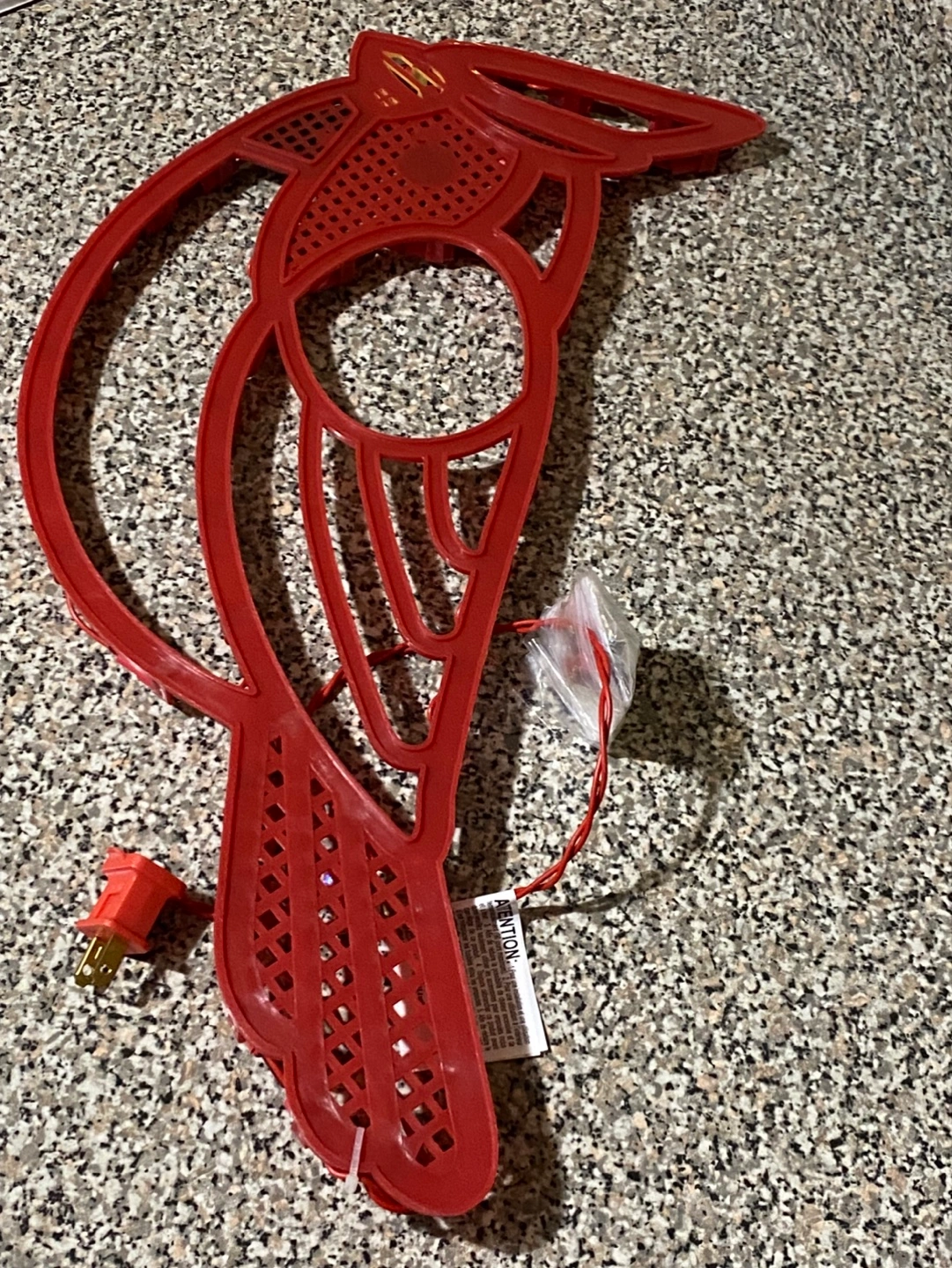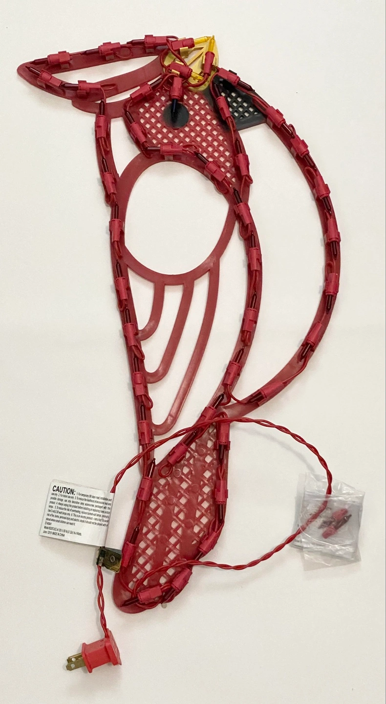 Pre-owned Christmas decoration. Red cardinal shape outlined with small red lights.