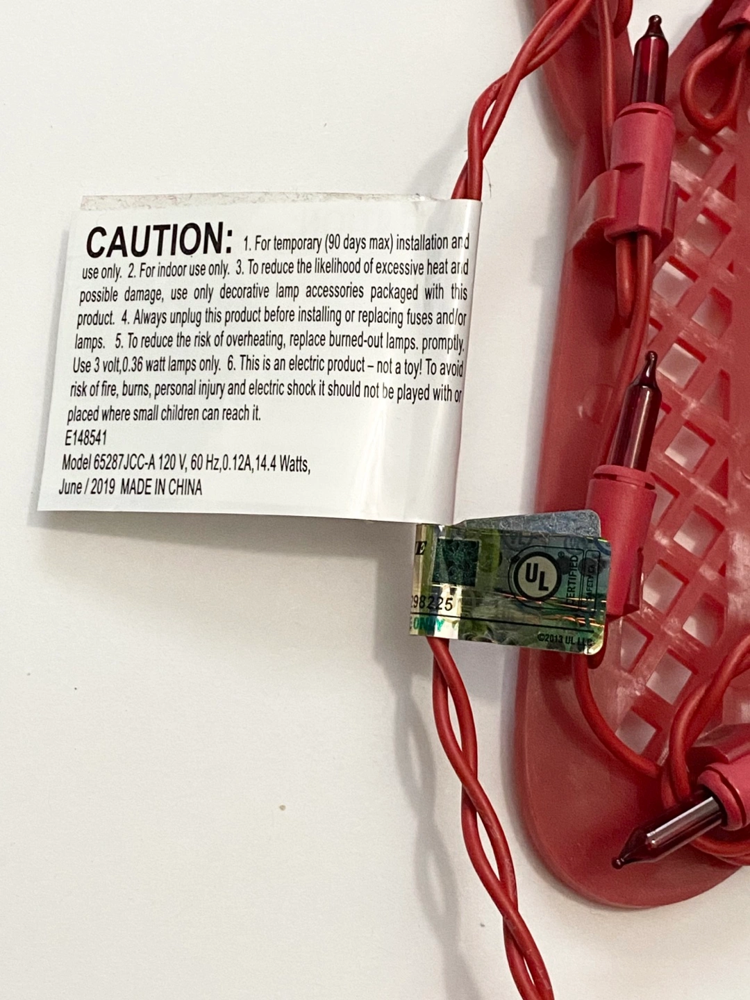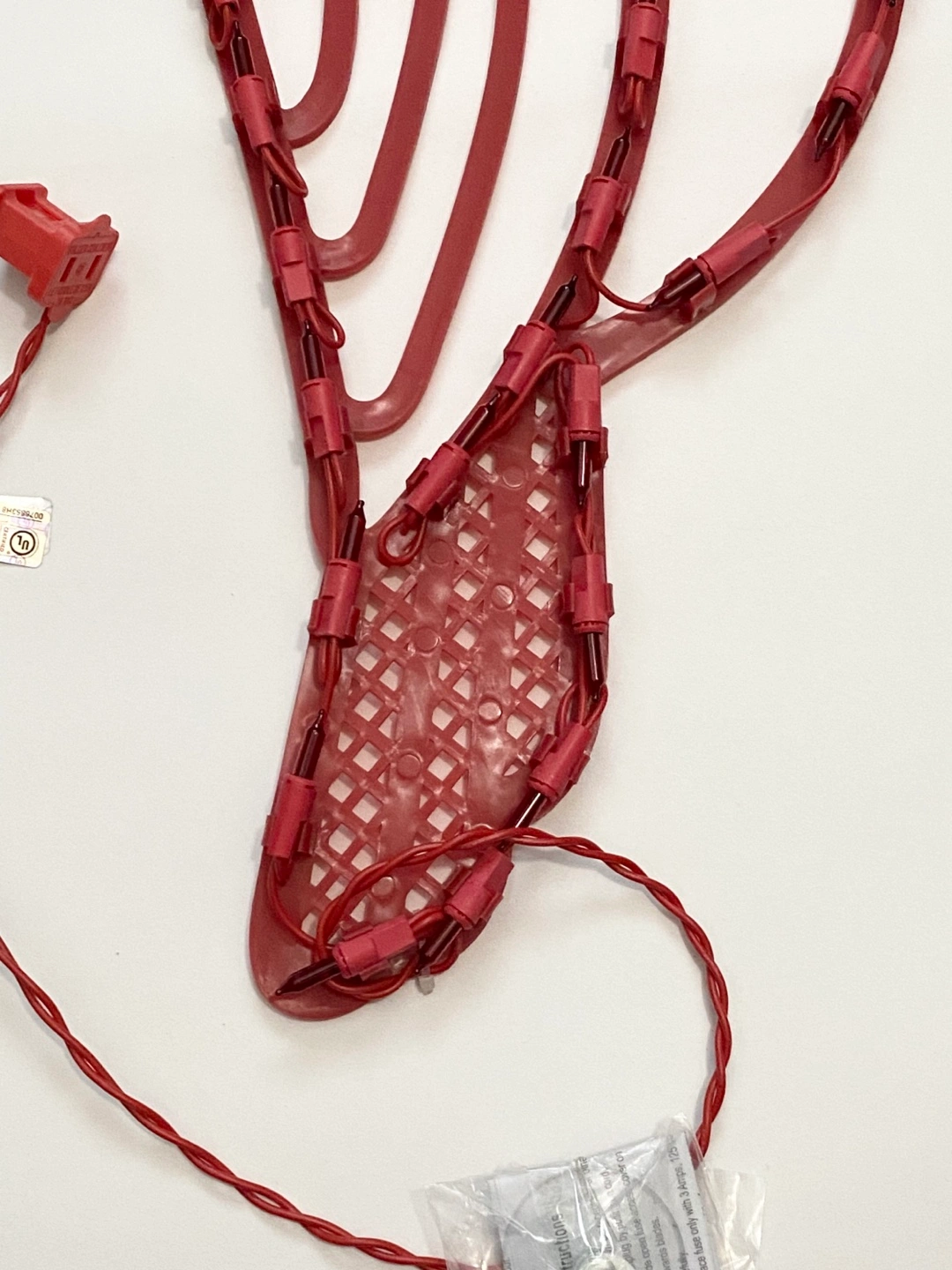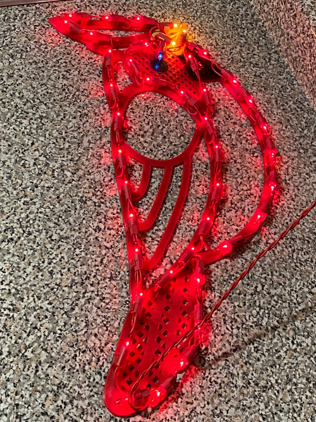 Pre-owned Christmas decoration. Red cardinal shape outlined with small red lights.