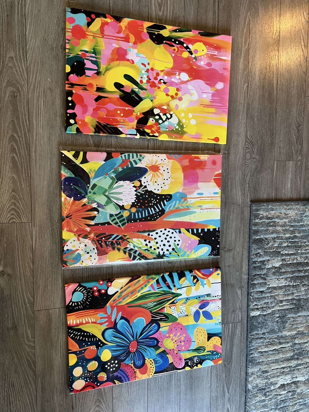 1 / 31 / 3Buy & SellVibrant Floral & Abstract Triptych Canvas Wall ArtVibrant Floral & Abstract Triptych Canvas Wall Art$30Set of three framed canvas prints. Bold colours, floral and abstract designs. Modern and colourful. Great for adding a pop of colour to any room.WHERE TO MEETCheck LocationView MapSELLERverifiedLailaEntertainment District1005 reviews1 chats·6 favorites·122 viewsSEND CHAT TO SELLERHi Laila! I’m interested in your listing.Hi Laila! I’m interested in your listing.Get the Karrot app to chatSign In to chat