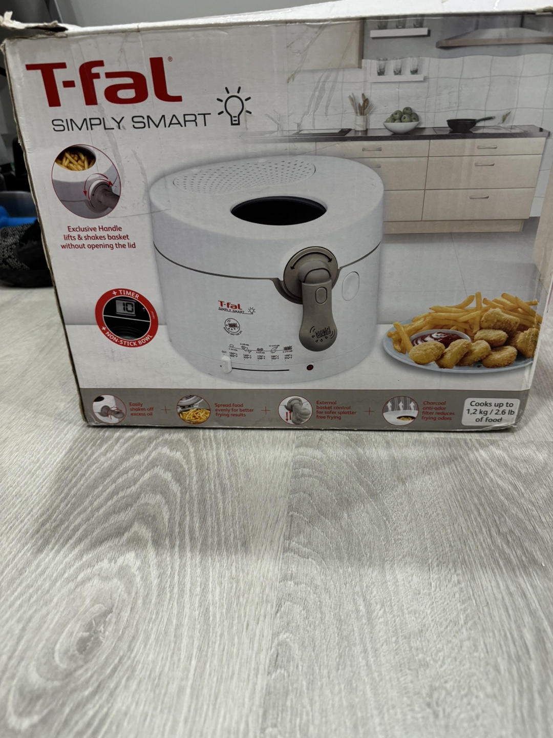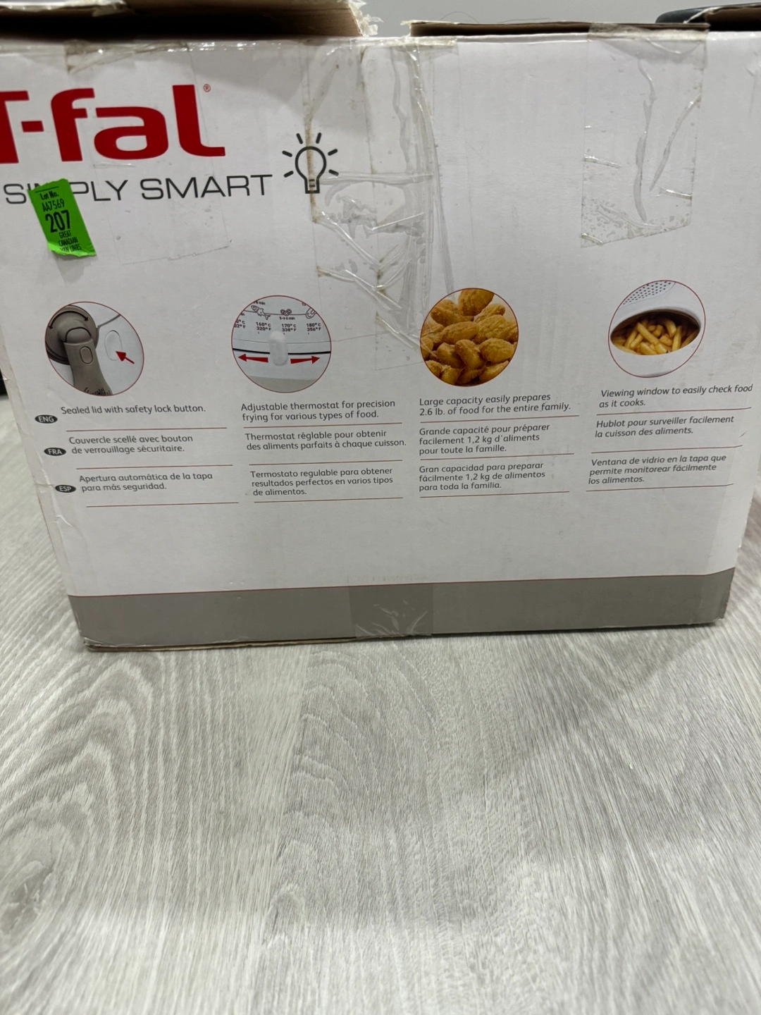 Large capacity deep fryer. Adjustable thermostat for precise temperature control. Sealed lid with safety lock button. Exclusive handle lifts and shakes the basket without opening the lid. Cooks up to 2.6 lb of food.