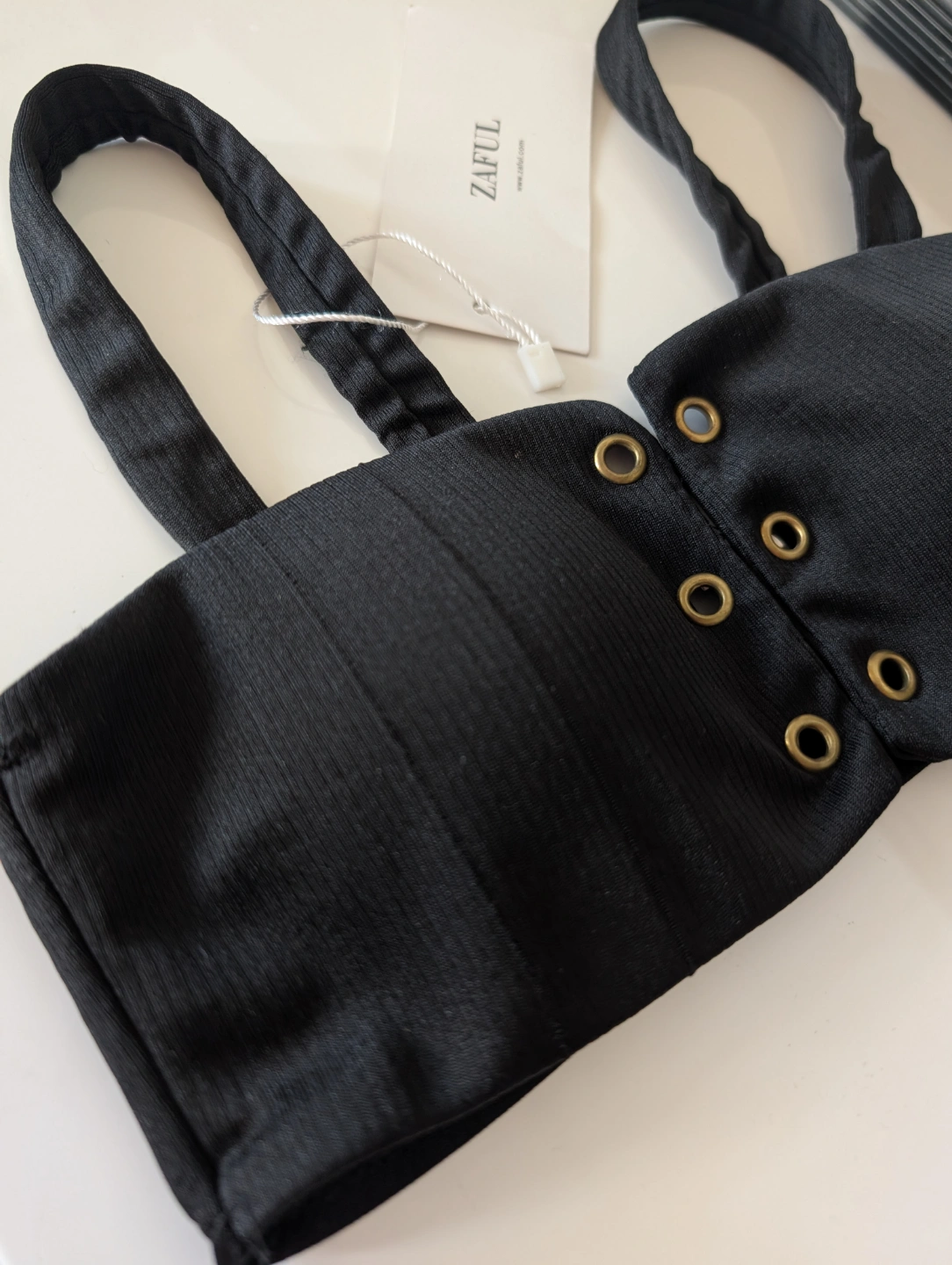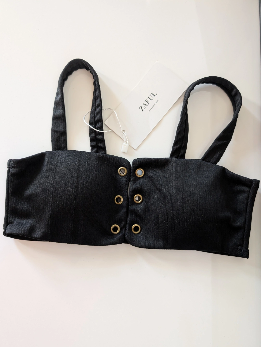 Brand New Black Ribbed Bandeau Bikini Top or bra