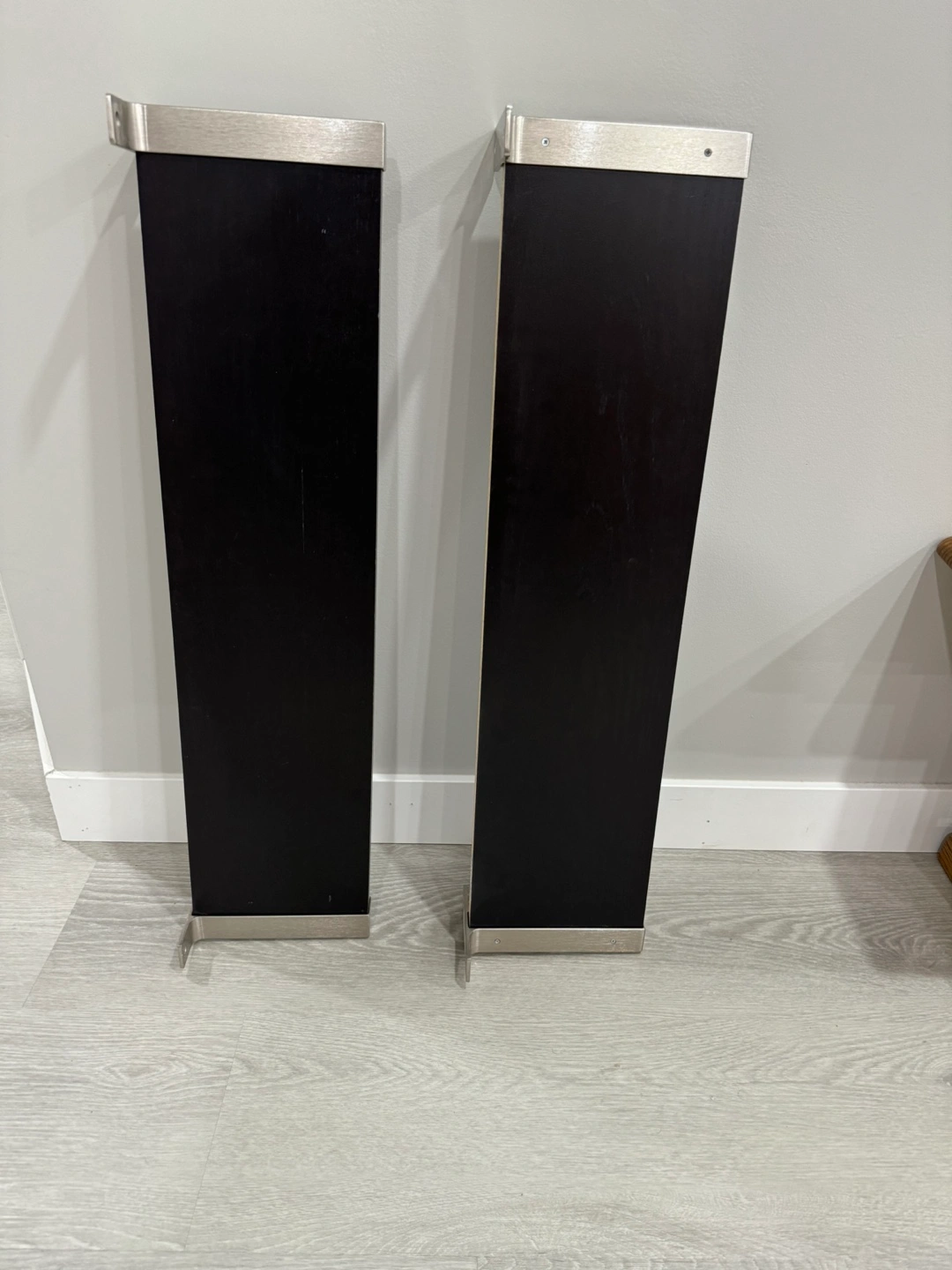 Two black-brown Lack wall shelves. Silver-toned metal brackets. Great for books, decor, or storage.