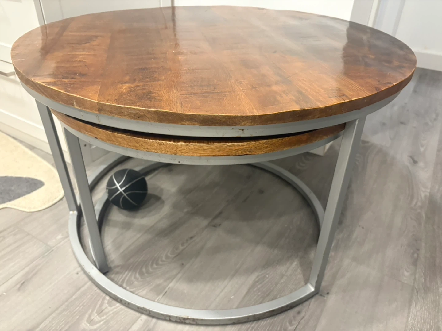 This set includes two nesting round coffee tables with wood tops and metal bases. They're perfect for any living room! Some dings from move on metal as shown in pictures. $150 for set. Pick up in Lincoln