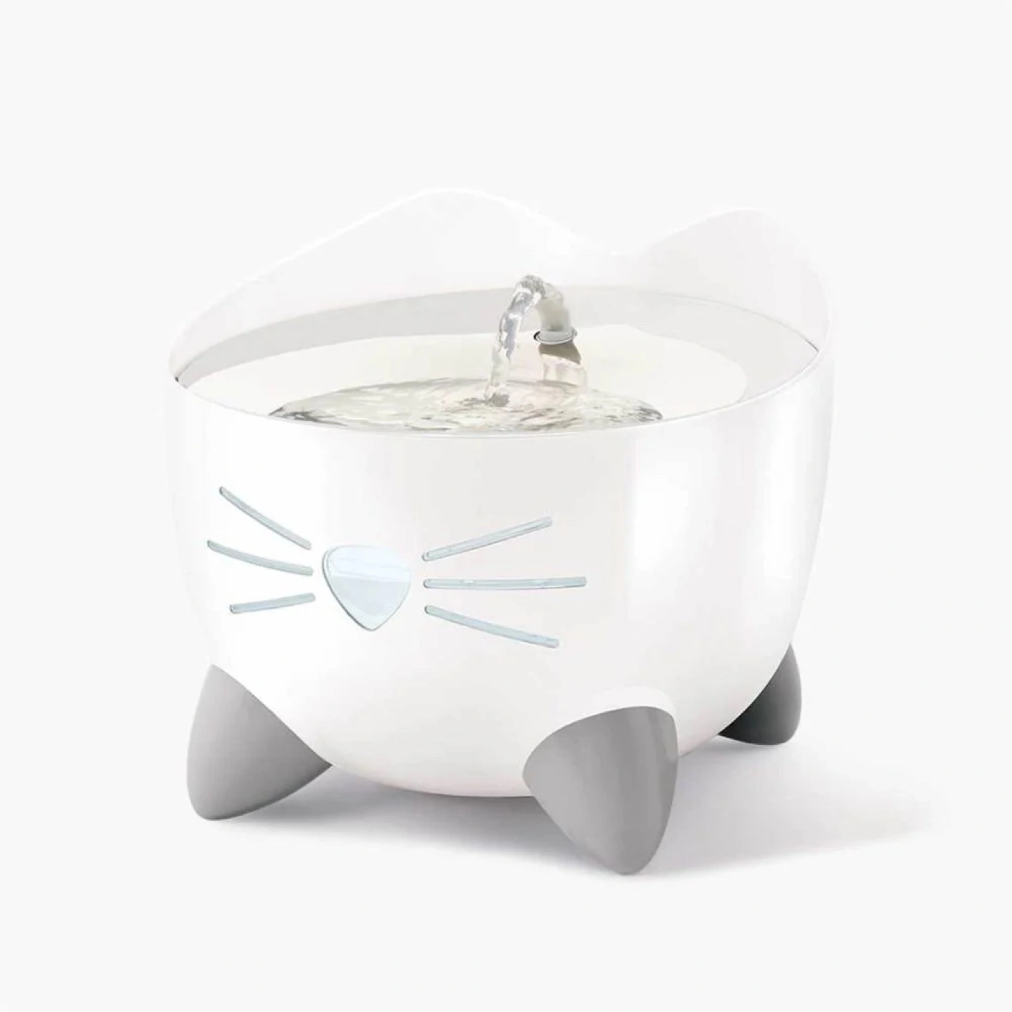 Easy to clean pet water fountain. Moving sale, fountain is in perfect condition. My cat loves it. 8 filters included (1 filter lasts 30 days).