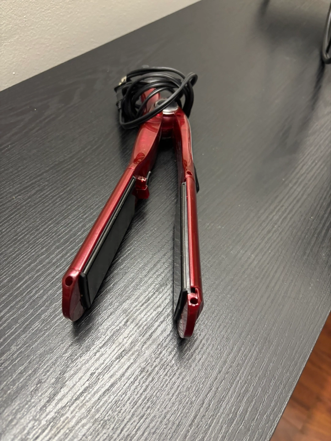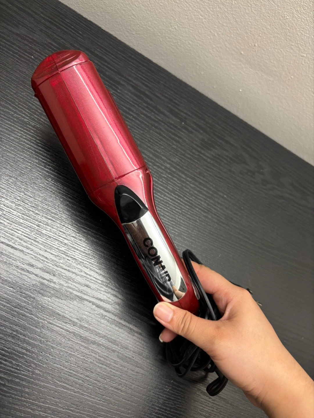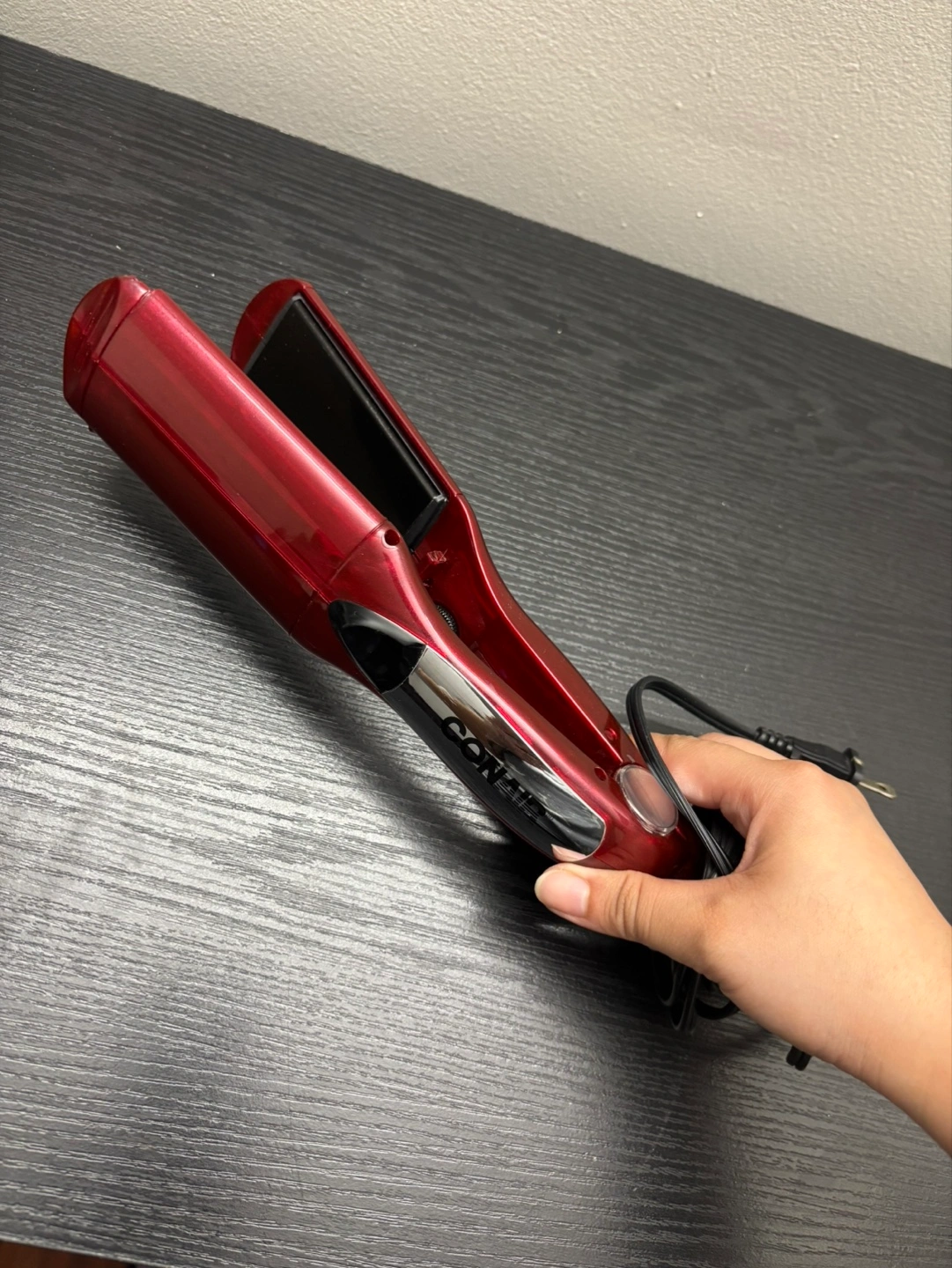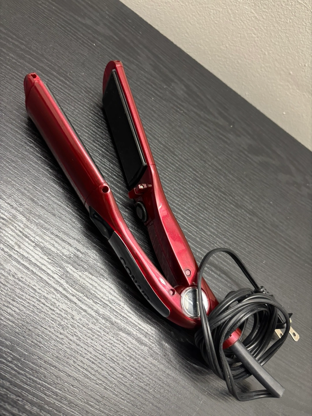 Red Conair flat iron. Used condition. Includes power cord. Great for straightening or curling hair.