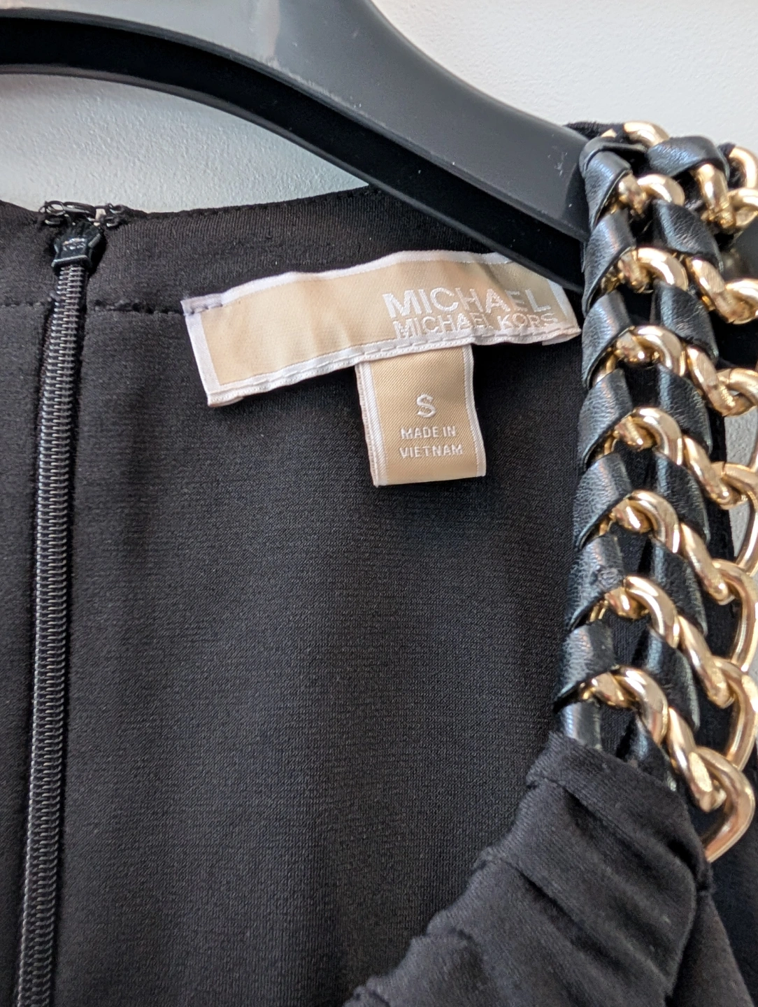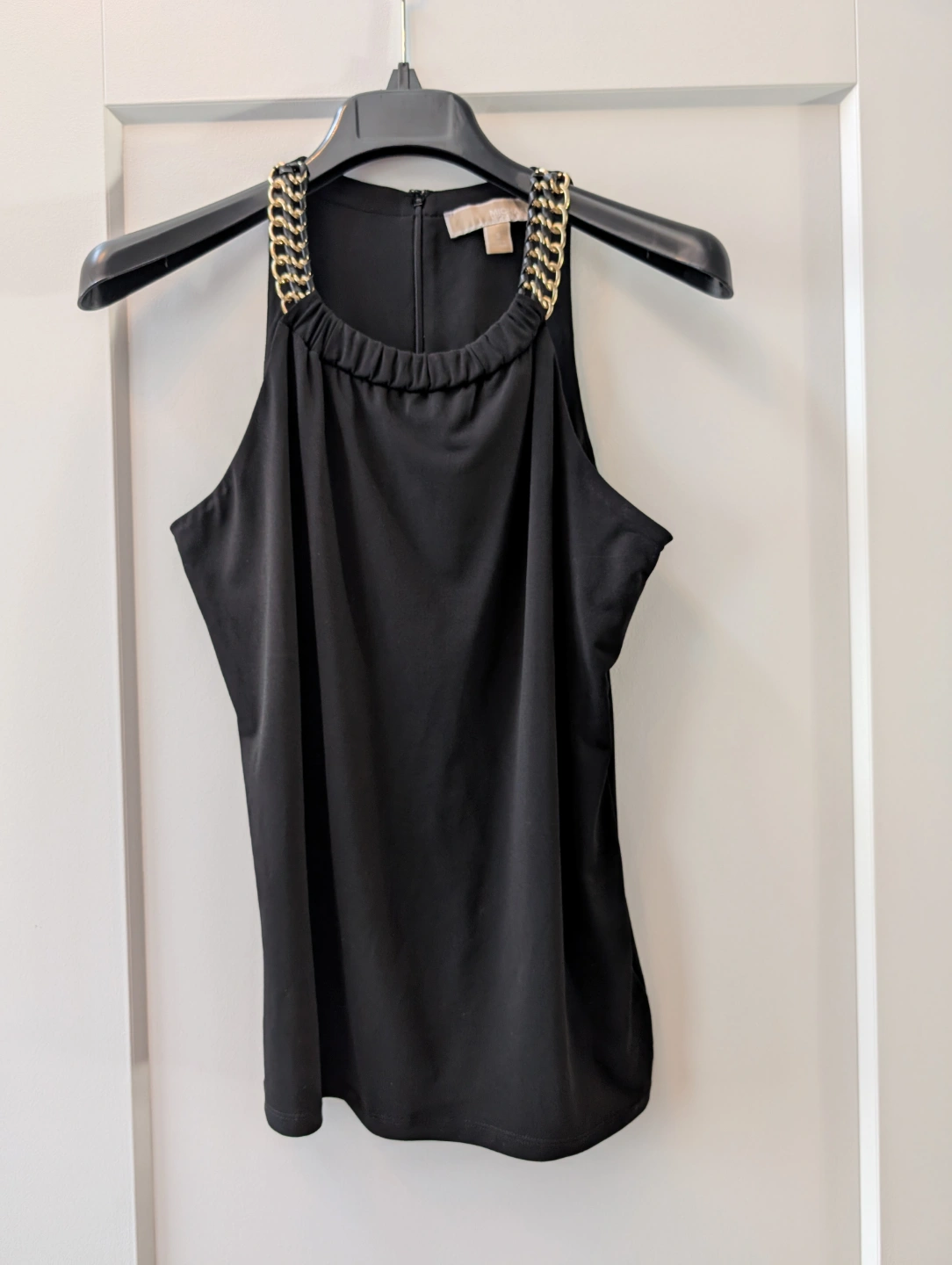 Michael Kors Black High Neck Tank Top with Gold Chain