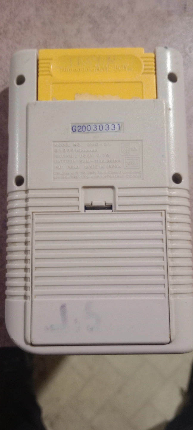 Original Game Boy handheld gaming console. Includes one game cartridge. Shows signs of wear.