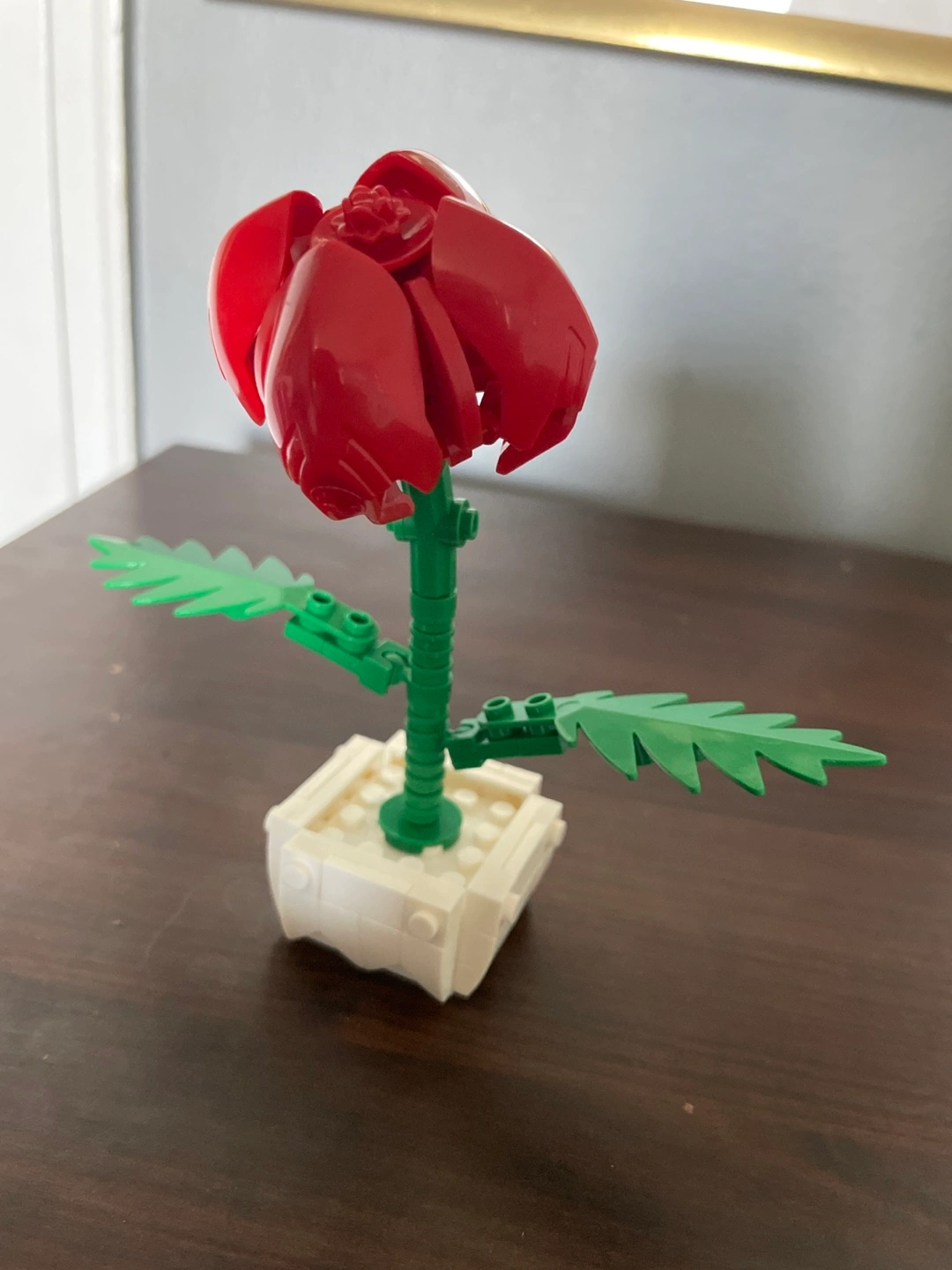 Unique creation. Red flower with green leaves. Planted in a white pot. Great for collectors or enthusiasts. A simple beautiful gift It would never die