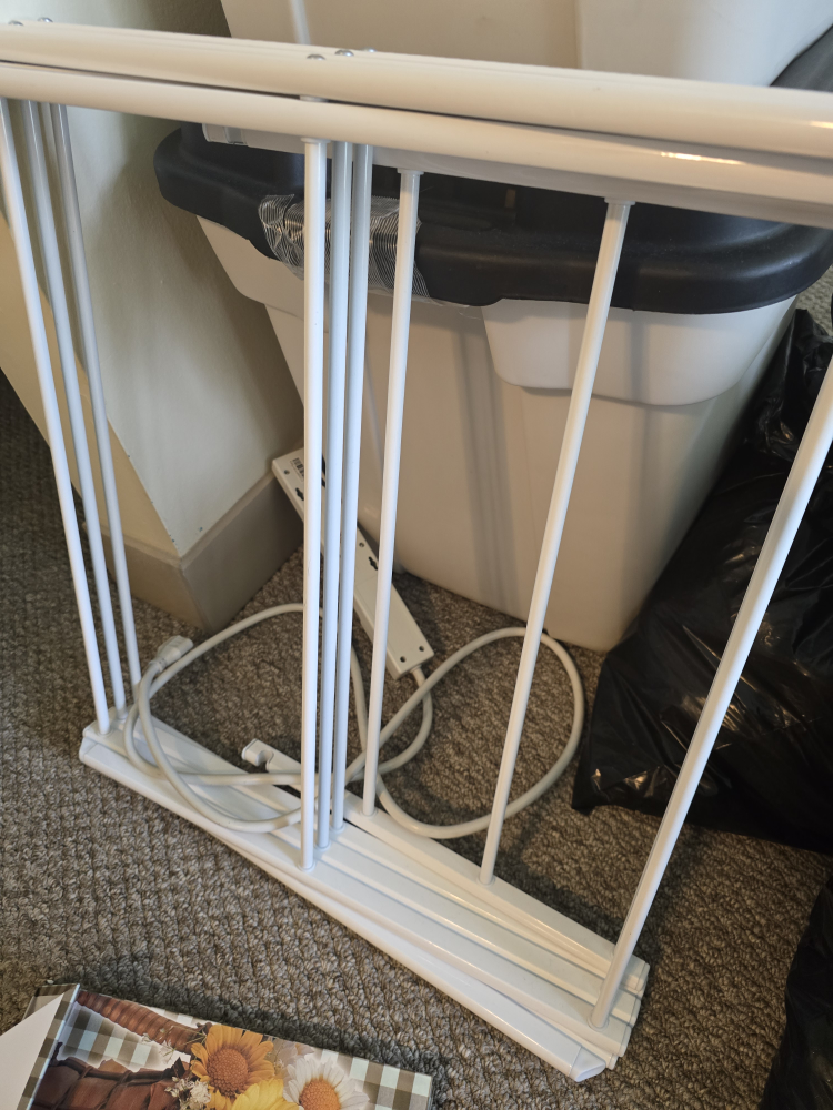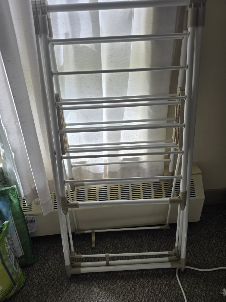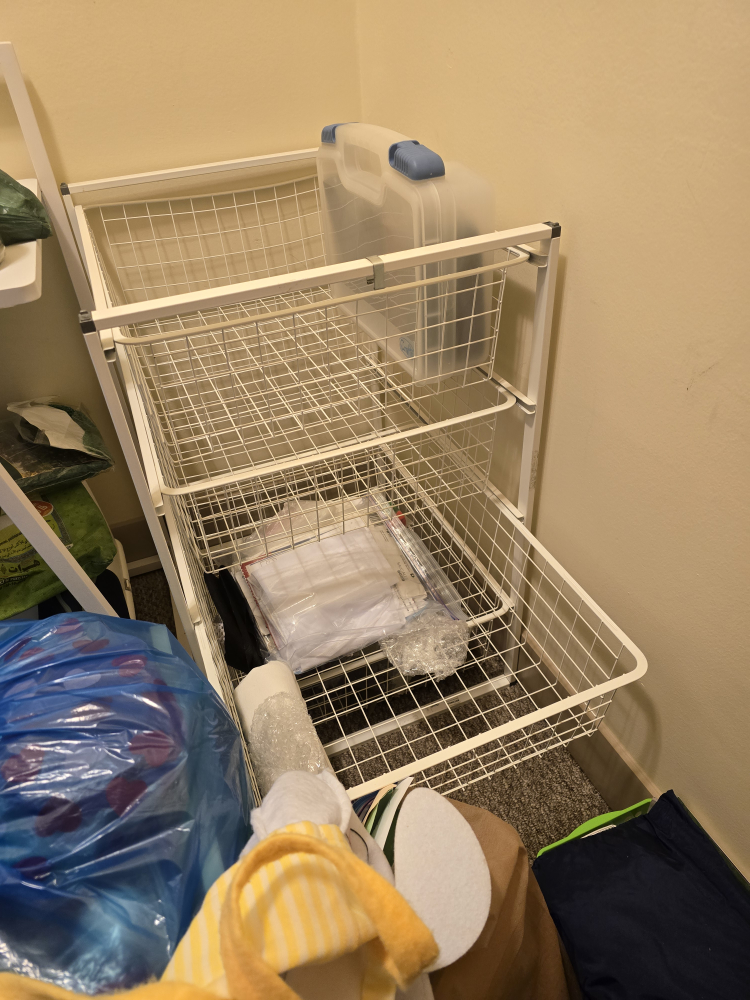 besides a white 4 shelf drawer for craft and 2 cloth hanger stands.