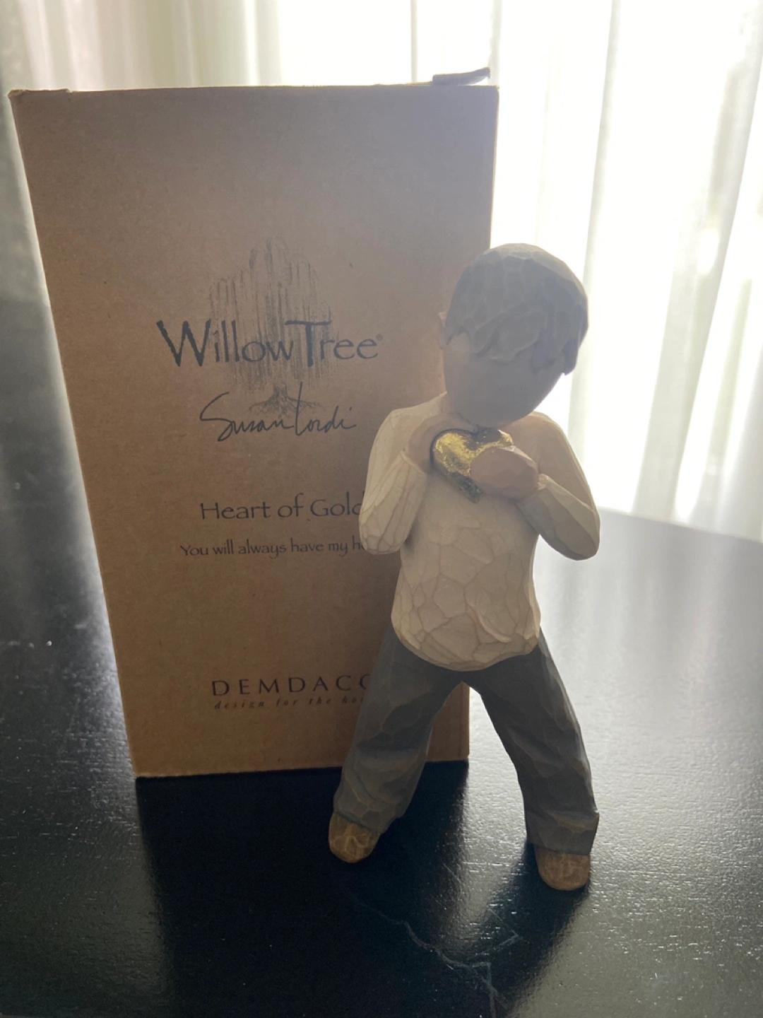 20Susan Lordi Willow Tree figurine. Heart of Gold. Adorable boy holding a heart. In original box. Demdaco design.