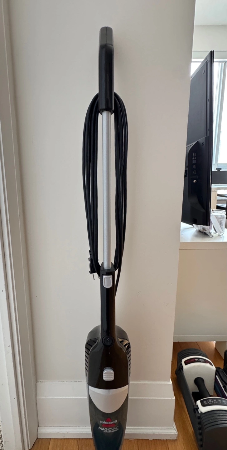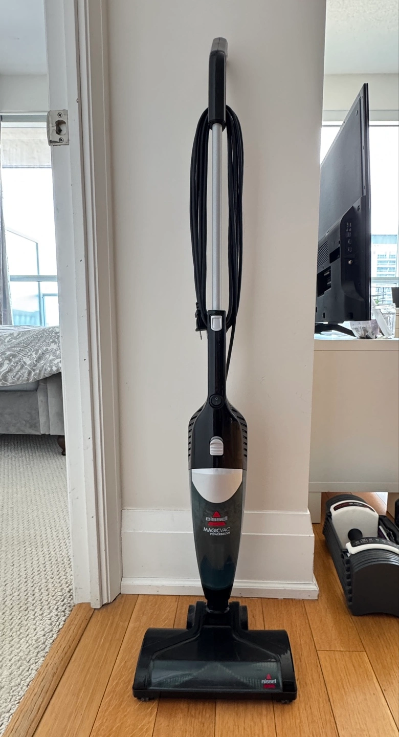 MOVING SALE Bissell Magic Vac PowerBrush 3-in-1 Corded Stick Vacuum Cleaner NO PRICE NEGOTIATIONS In excellent, clean condition; no damages or issues; has been kept very well Can switch from a stick vacuum to a hand vacuum Very good suction power Lightweight and space saving Includes a suction More powerful suction and better carpet cleaning performance than the Bissell Featherweight Retails for over $90 at Canadian Tire Pick-up near Sherbourne and Wellesley See other listings for more items for sale