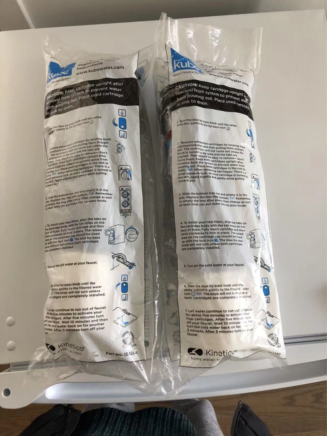 Two unopened Kube brand advanced water filtration system replacement filter cartridges. Includes instructions. Perfect for keeping your water clean and fresh.