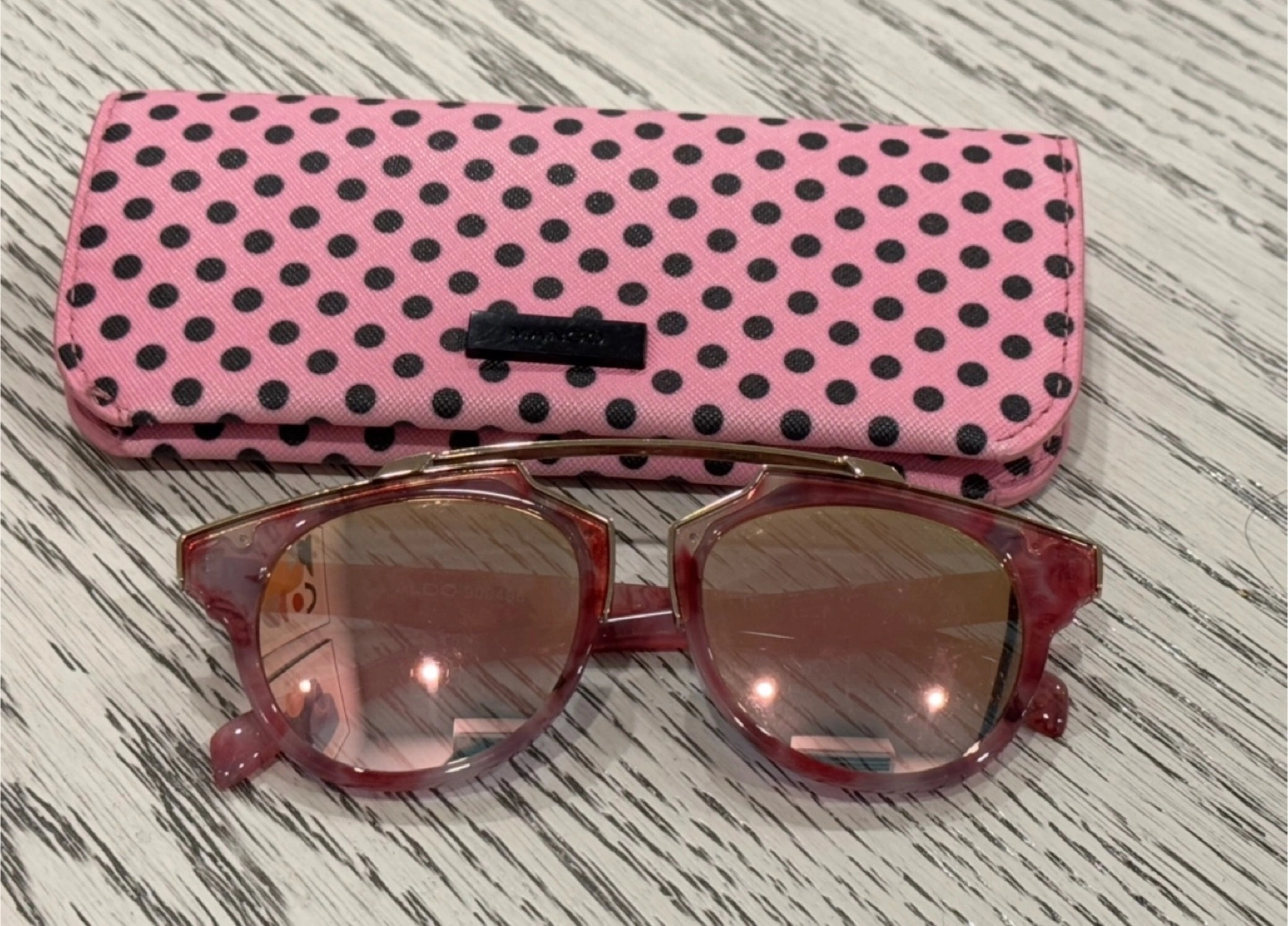 Super cute pink sunglasses with a polka dot carrying case from mango! In good condition, hardly worn. One size fits most.