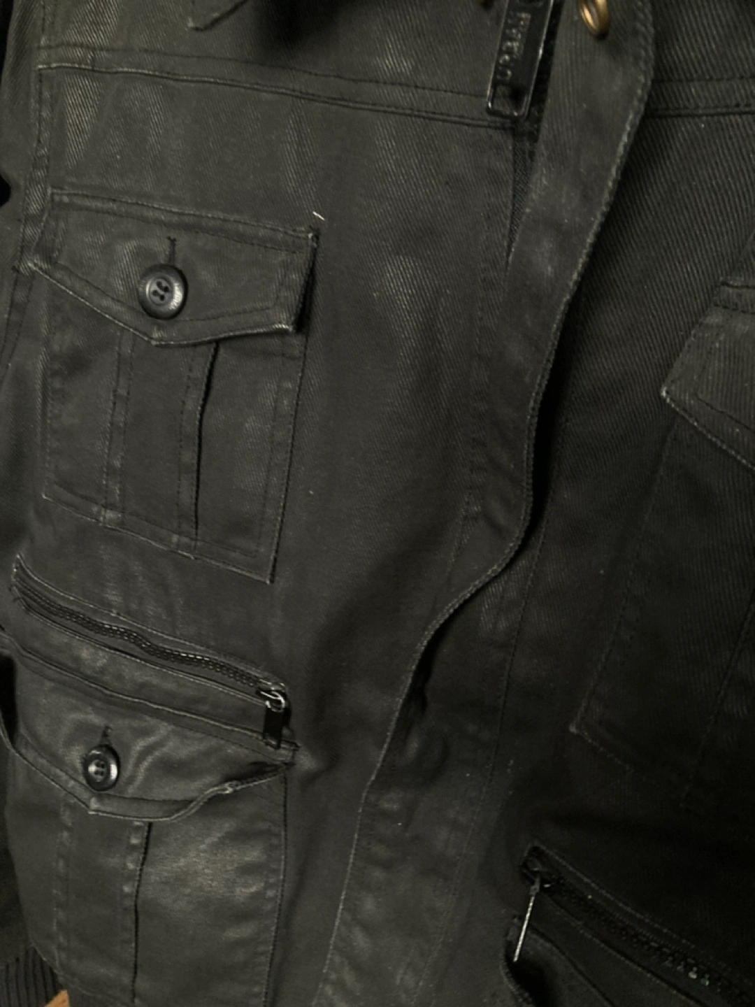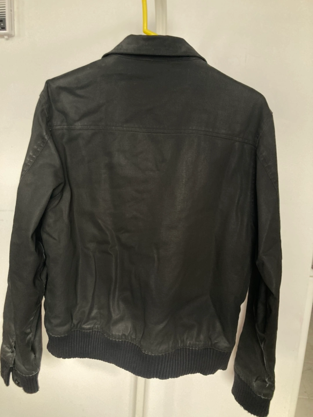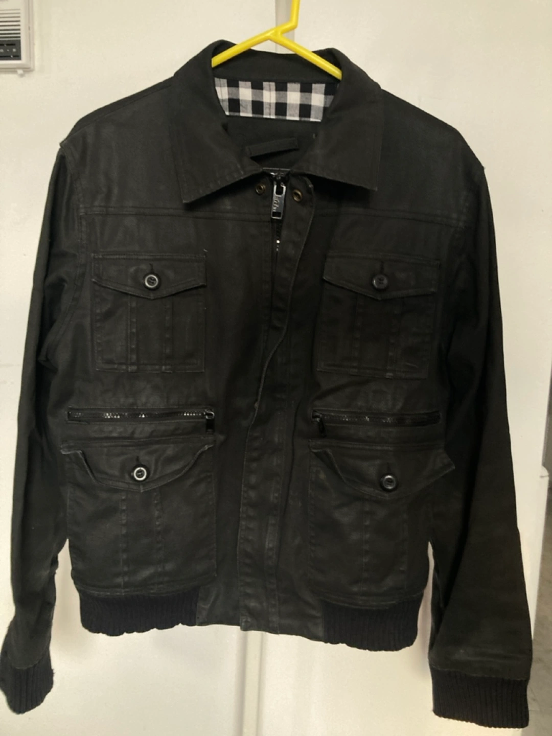 Black men's jacket. Features multiple pockets, zipper closure, and ribbed cuffs. Great for colder weather. Good condition.