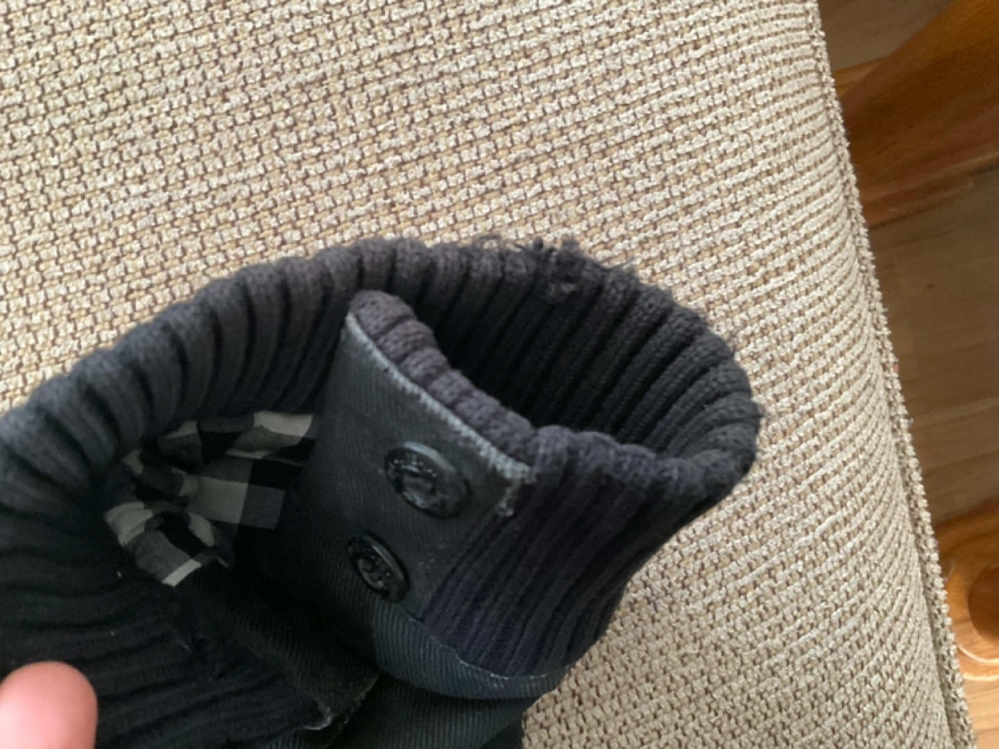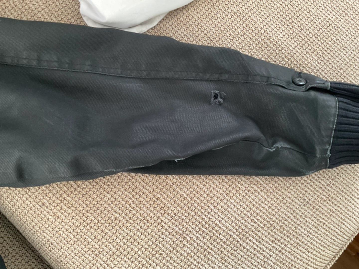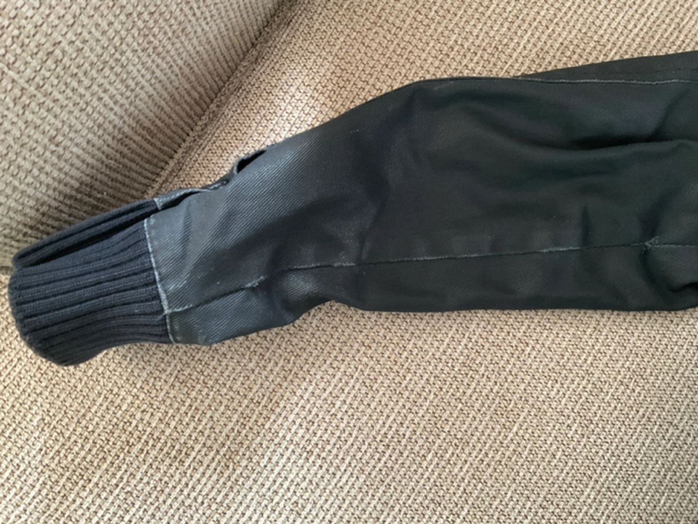 Black men's jacket. Features multiple pockets, zipper closure, and ribbed cuffs. Great for colder weather. Good condition.