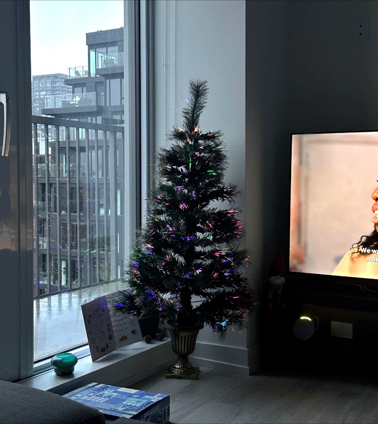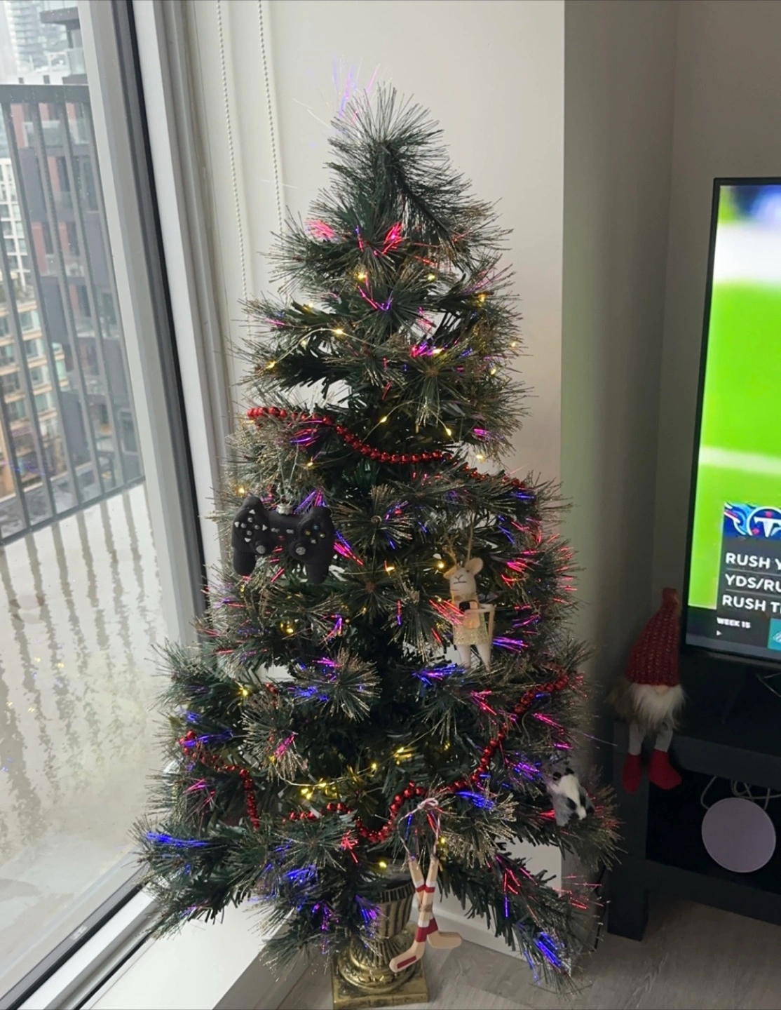 Beautiful fibre optic Christmas tree. Multicoloured lights. Comes with a gold coloured stand. Perfect for smaller spaces.