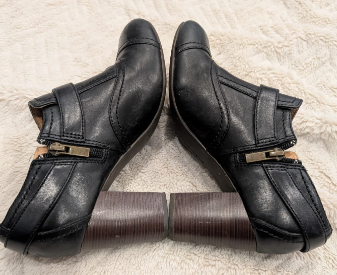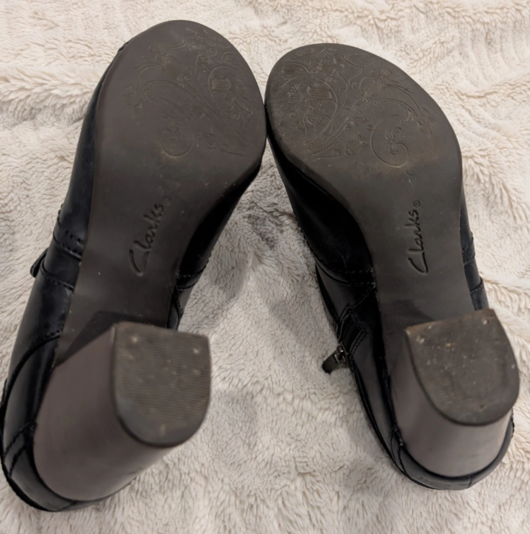 The Clarks Women's Town Edge Bootie is a stylish and comfortable footwear option made from 100% leather, featuring a cushioned footbed, a chic stacked block heel, and a convenient zip entry, making it perfect for both work and play.