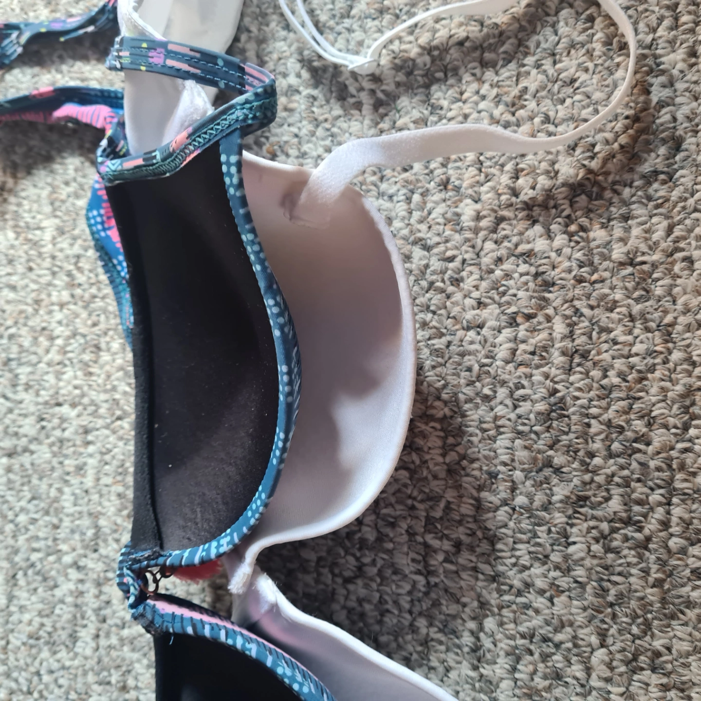 I don't know the size of the bra but I tried to make a comparison in the last few pictures with one of my bra which is 34C.