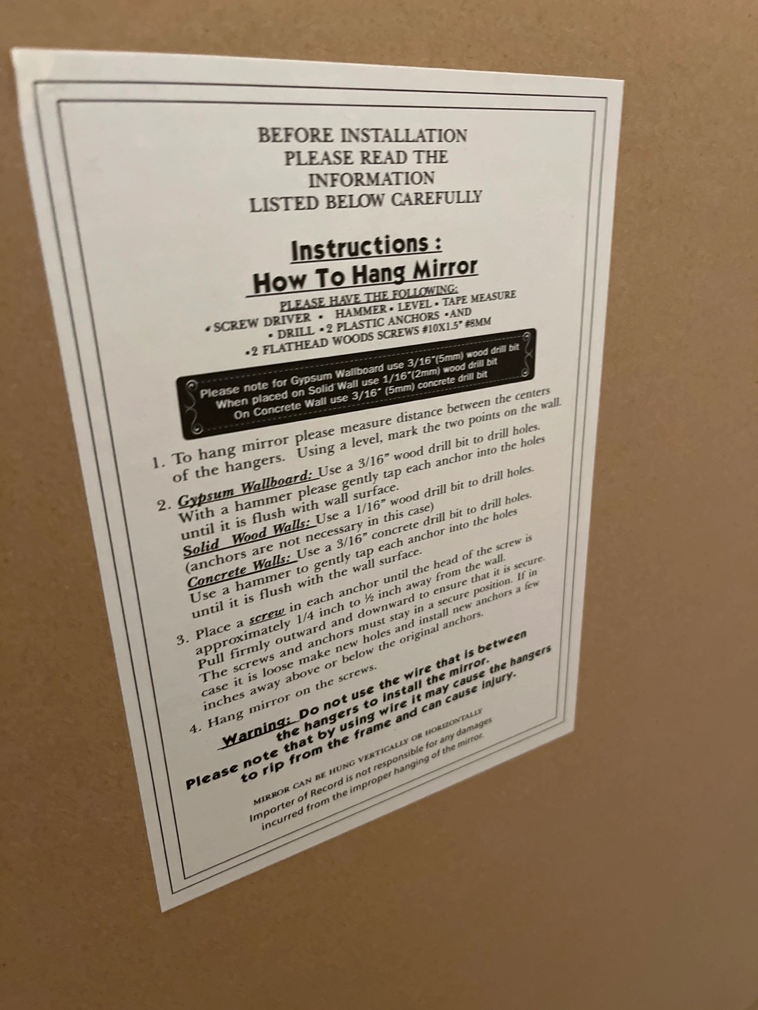 Large silver framed mirror. Intricate frame detailing. Good condition. Hanging instructions included.