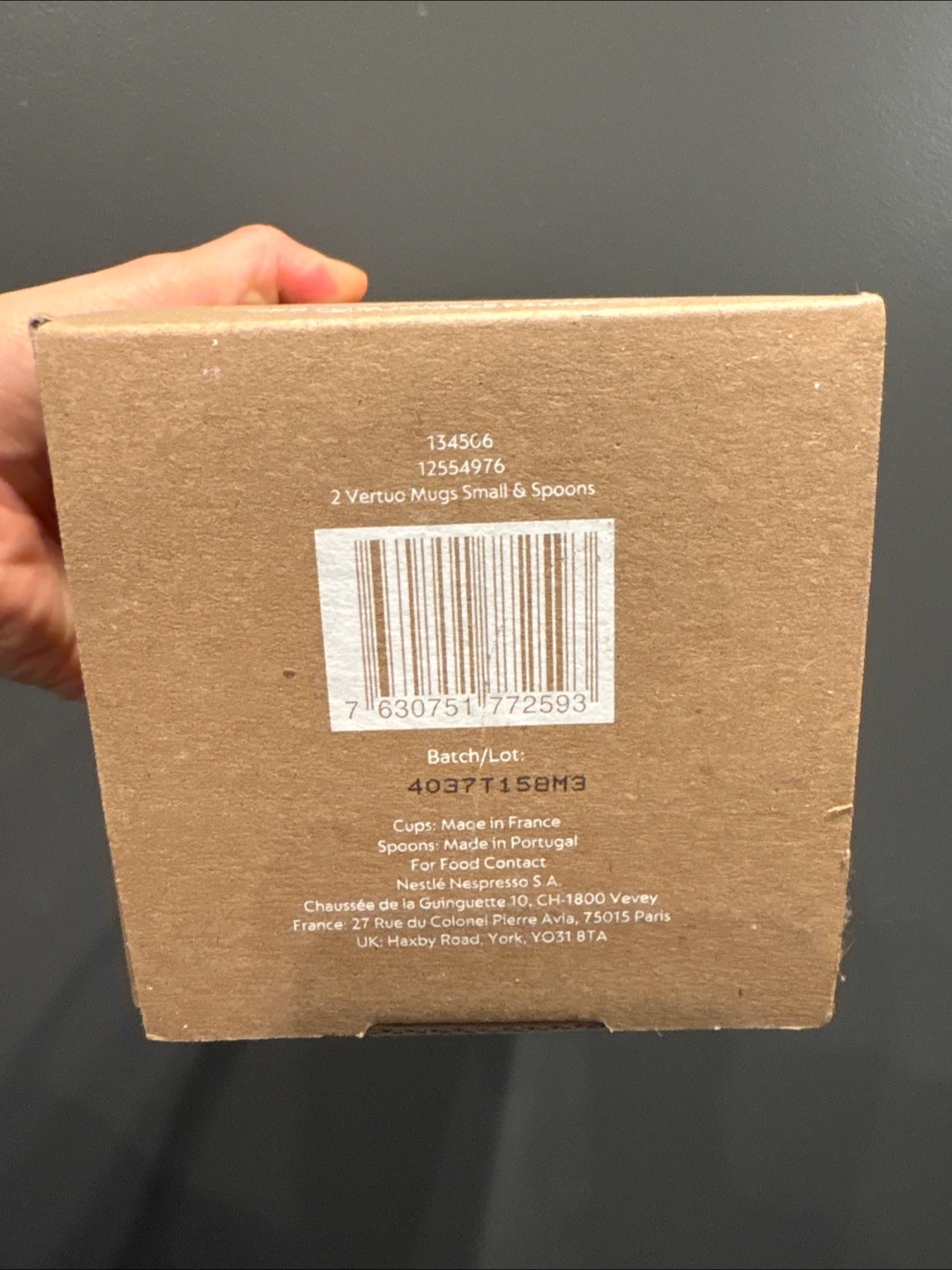 Two small Nespresso Vertuo mugs and spoons. Brand New in box. Never opened. Made in France and Portugal.