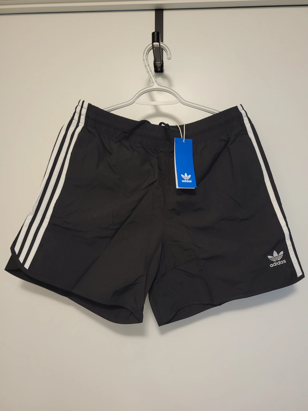 Brand new Adidas Sprinter shorts. Black colour. Size Medium. Features three white stripes down the side. Still has tags.