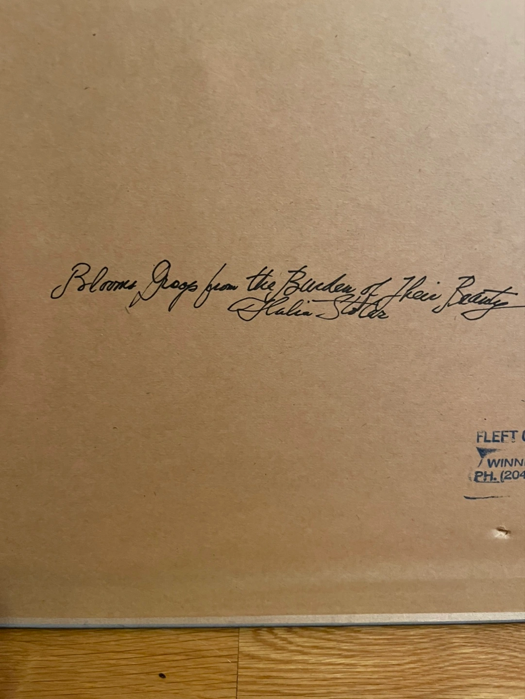Lovely framed watercolor painting. Depicts pink and white peonies. Artist Halia Stolar signature visible on the back with inscription saying “Blooms droop from the burden of their beauty. Looks great on a wall.