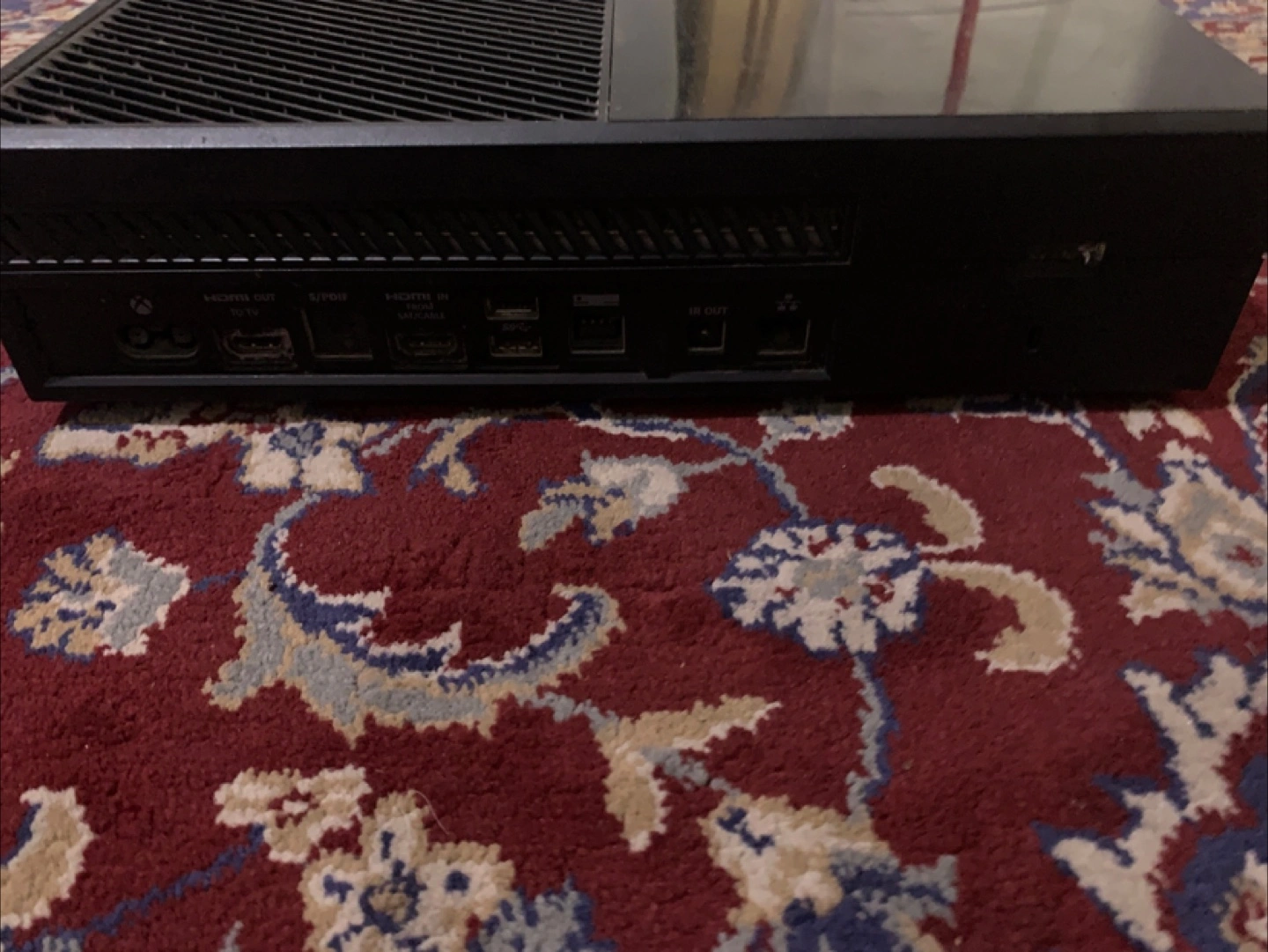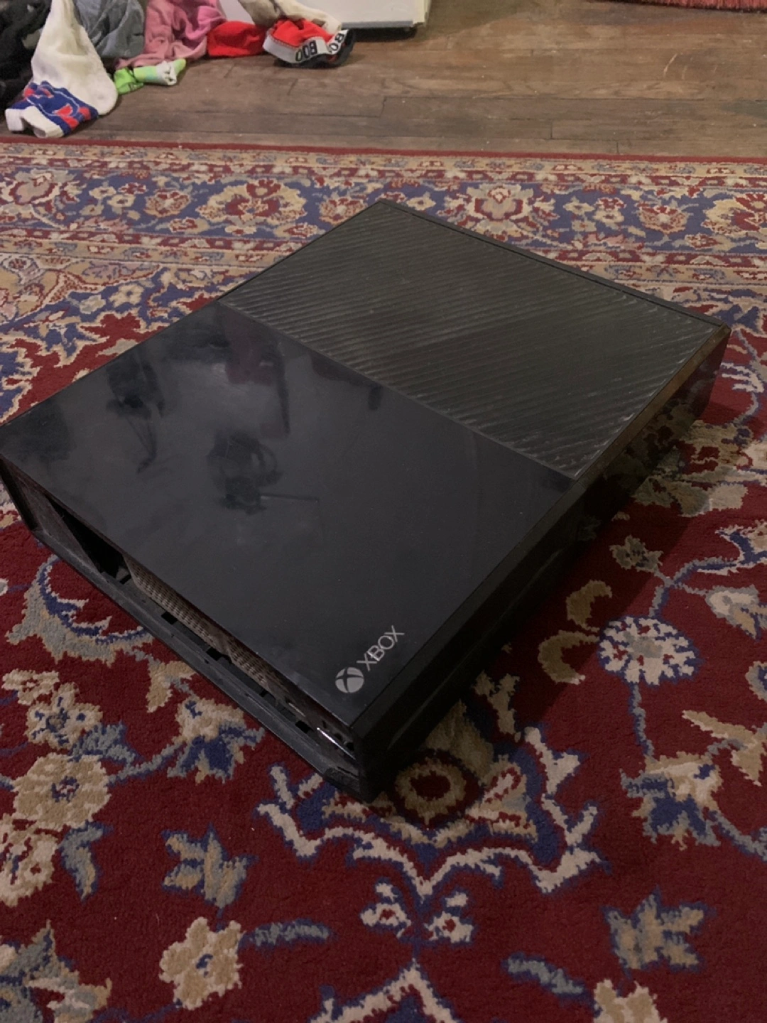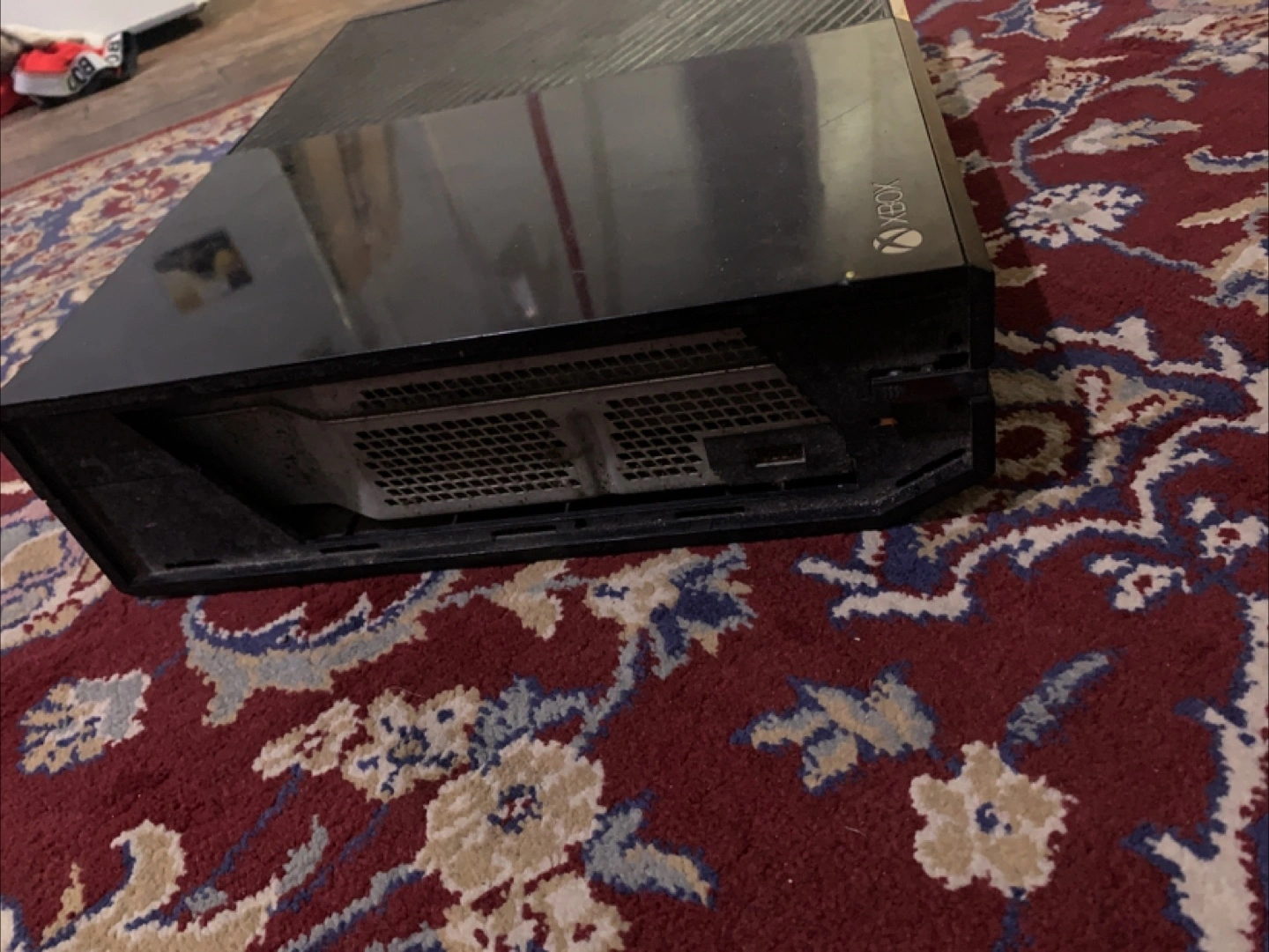 Black Xbox One console. Used condition. Selling as-is. Just missing Side Vent and Power Block