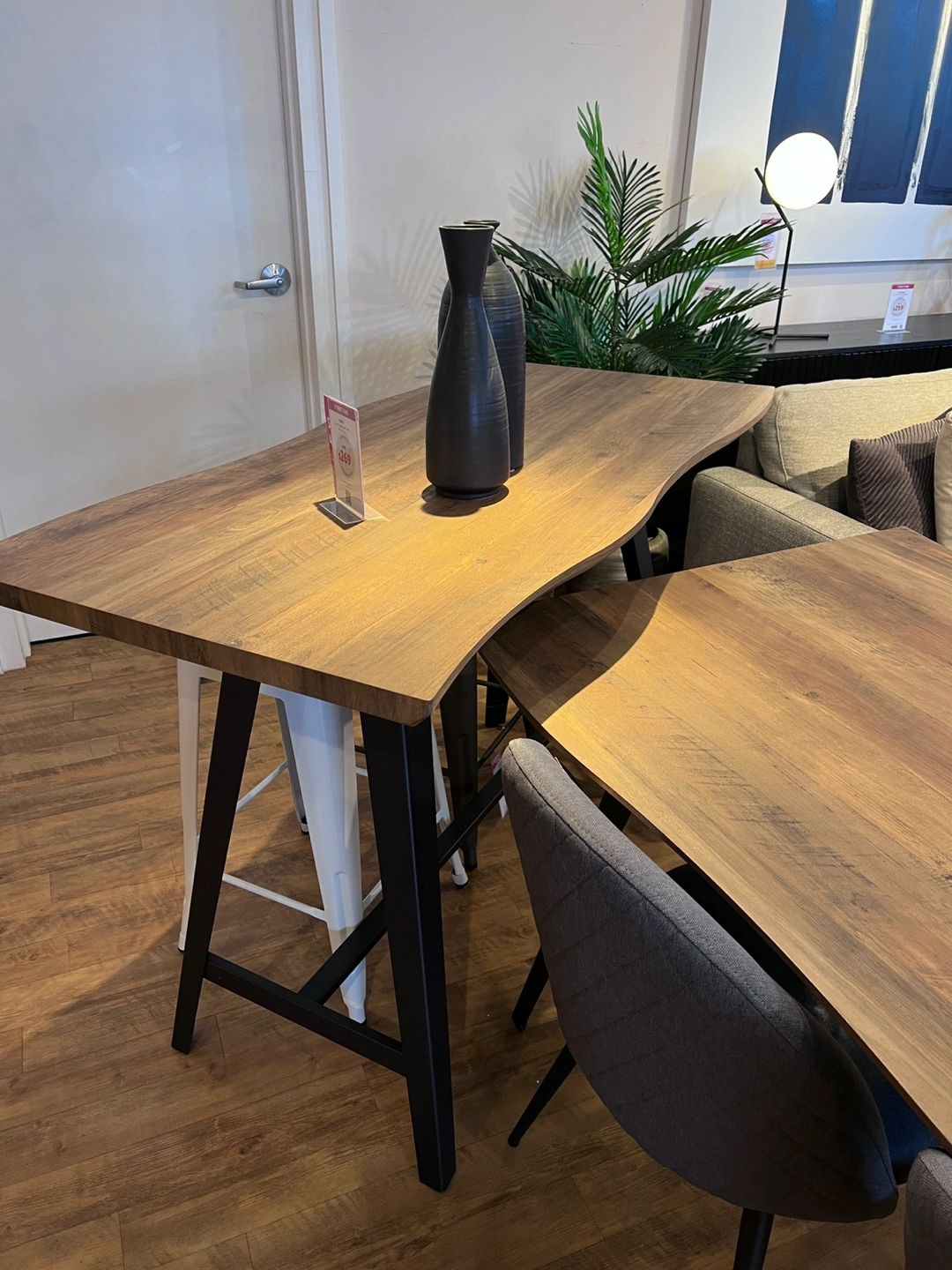 A stunning live edge replica, the Jerry bar table features a real wood look and touch. The faux-wood top is an ease to clean and breeze to maintain. Paired with sturdy iron legs, Jerry will give a rustic touch to your decor.