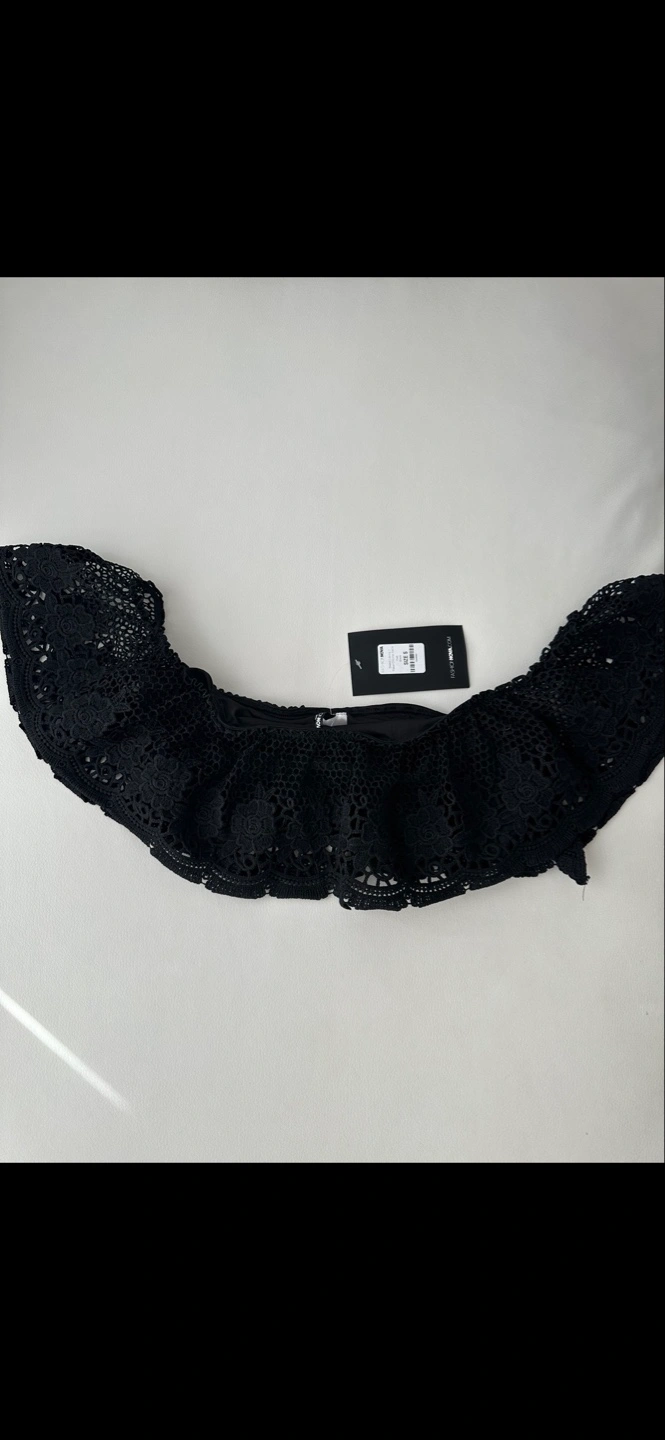 Beautiful black bikini top. Off-the-shoulder style. Features crochet detailing. New with tags. Size small