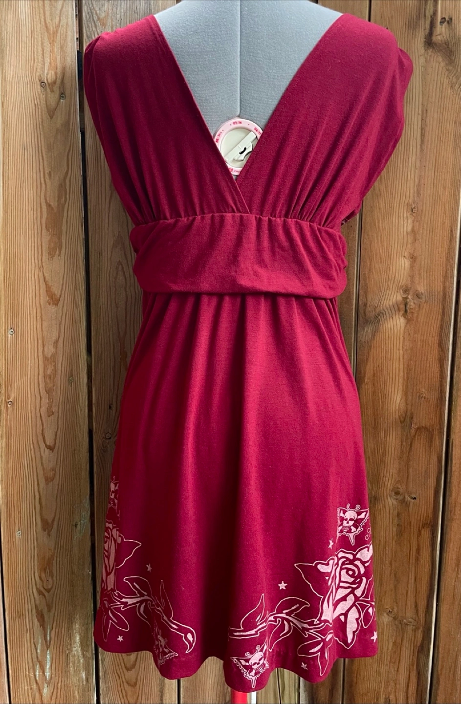 Features a Deep v-neckline front and back, sleeveless, Gorgeous Deep Red colour with a styled waistline