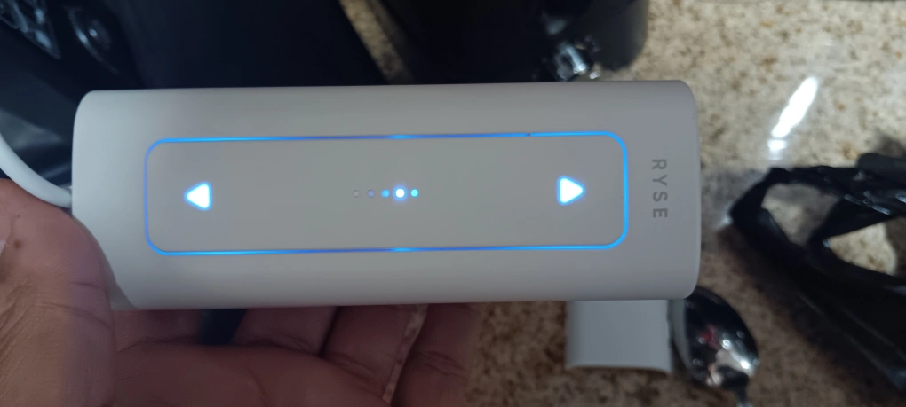 ryse. White. Includes power adapter and cord. Minor cosmetic damage shown in image. Battery capacity unknown.