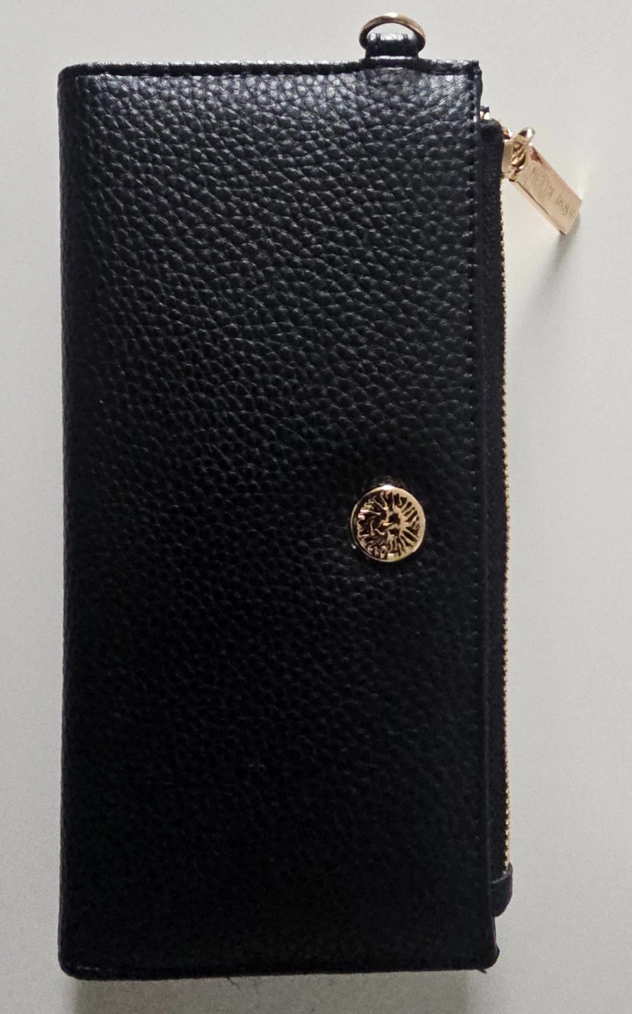 700Sleek black leather wallet. Multiple card slots and zipper closure. Gold-toned hardware. Great for everyday use. Never been used.. #declutteringsale