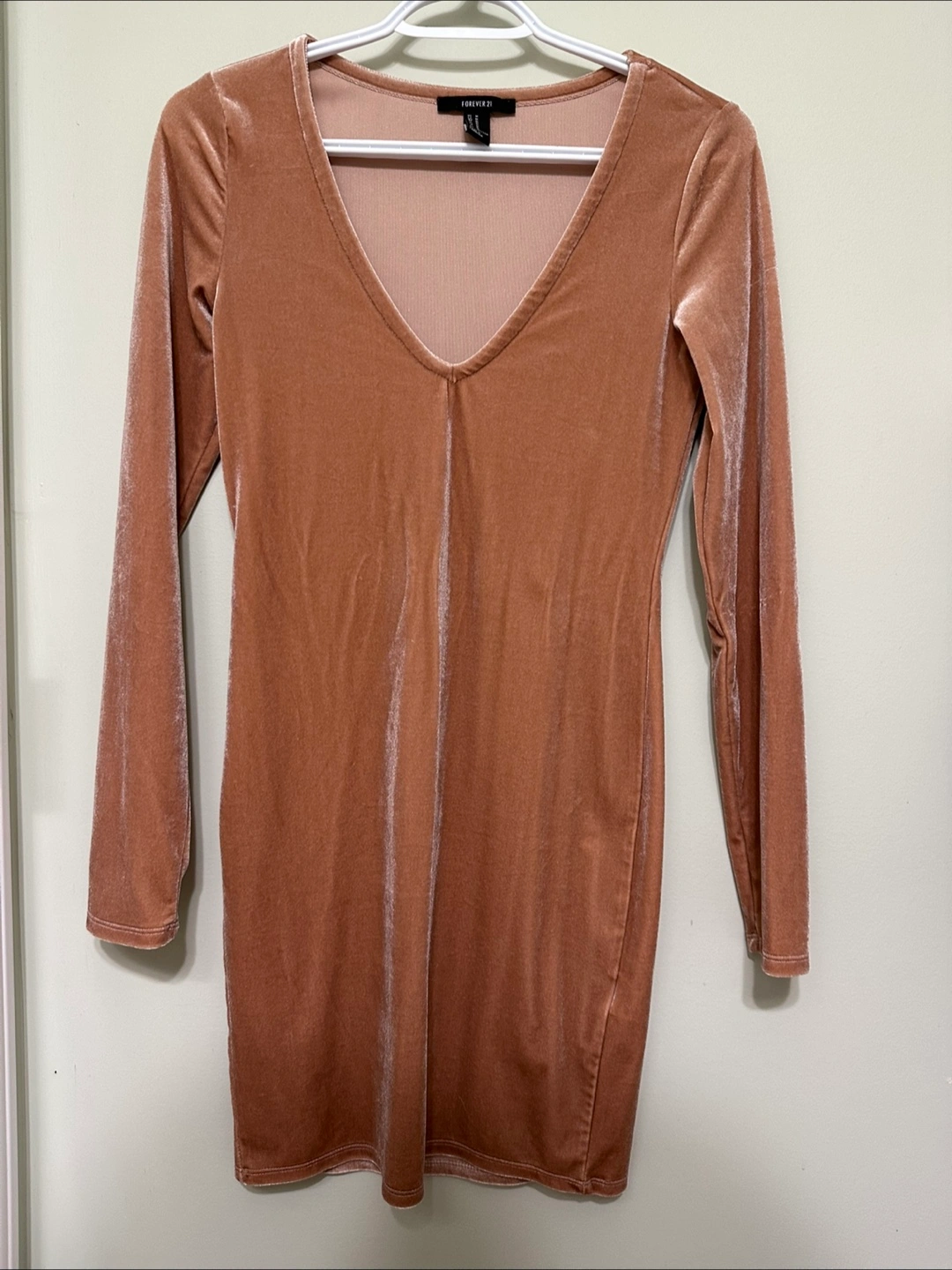 Dusty rose velvet mini dress. Long sleeves. V-neck. Great for a night out. Used twiced only.
