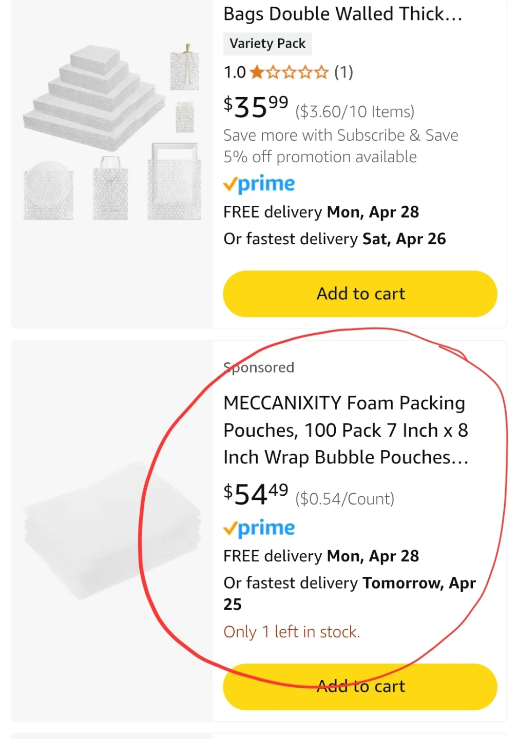 bubble bags. Open end design. 100 bags per carton. Great for packaging and shipping fragile items. Measurements are