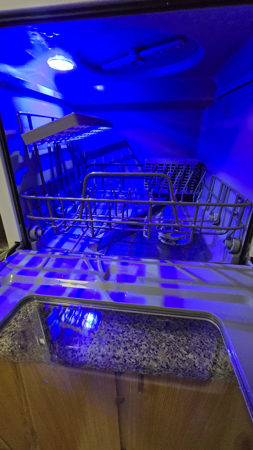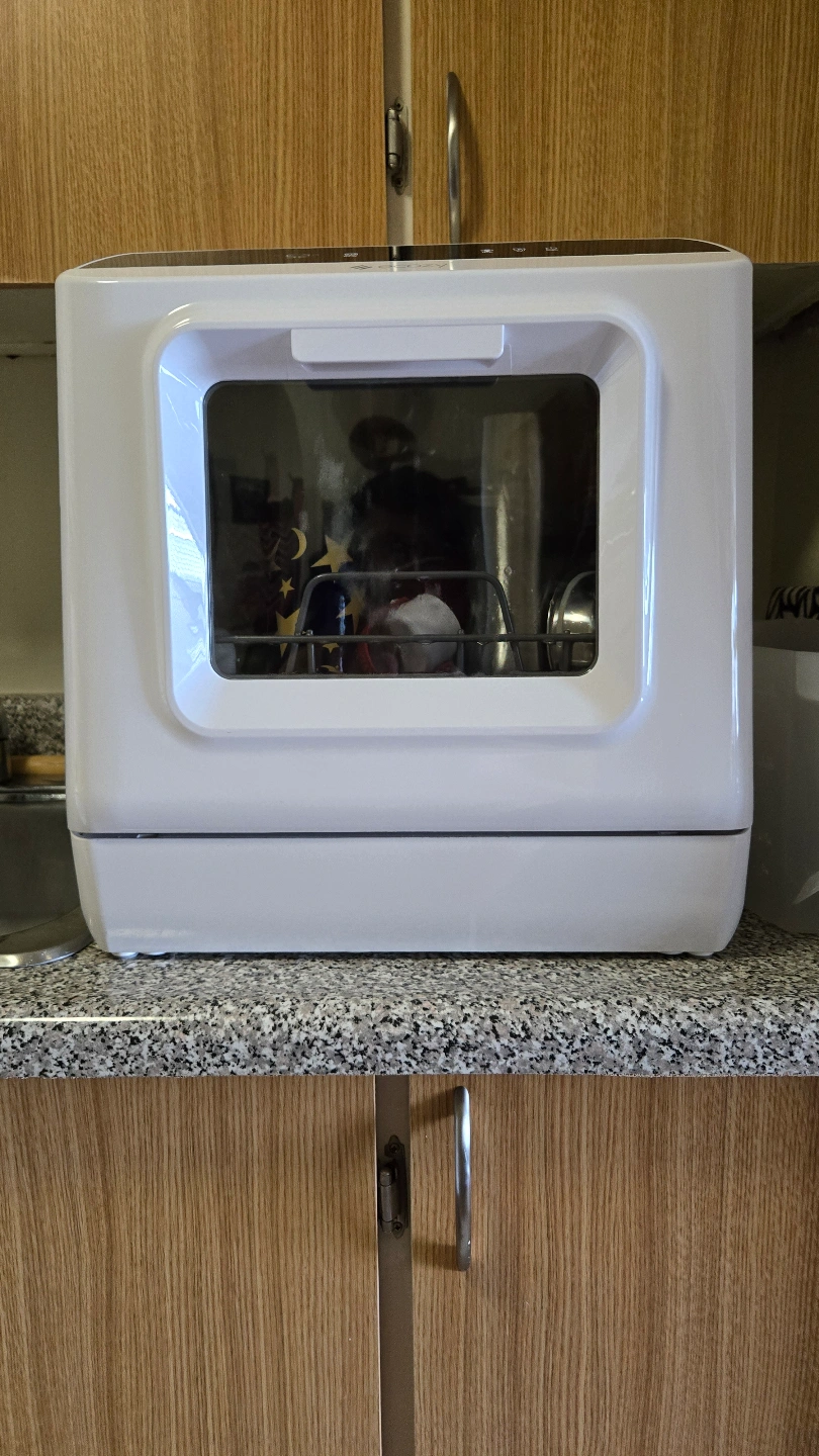 Compact countertop dishwasher. White finish. Includes instruction manual and energy guide. Good for small spaces and has been used for a little less than one year, no issues and has various modes. Fits plenty of dishes for meals of two people and can accept most detergents. Will also come with a water pitcher, utensil holder, and additional pipes/hookups for direct connection to plumbing. Can be used without those connections and empty out directly into the sink, as shown in photos, or connected to your plumbing. I have a video of it in the middle of a cycle as well, just shoot me a message!