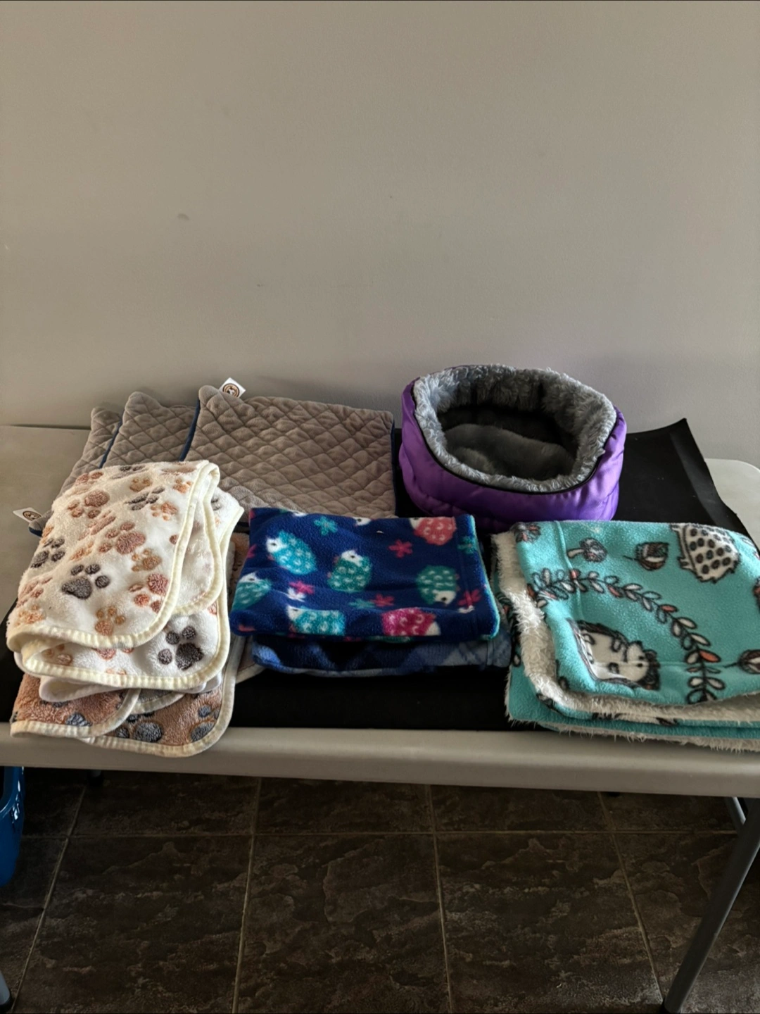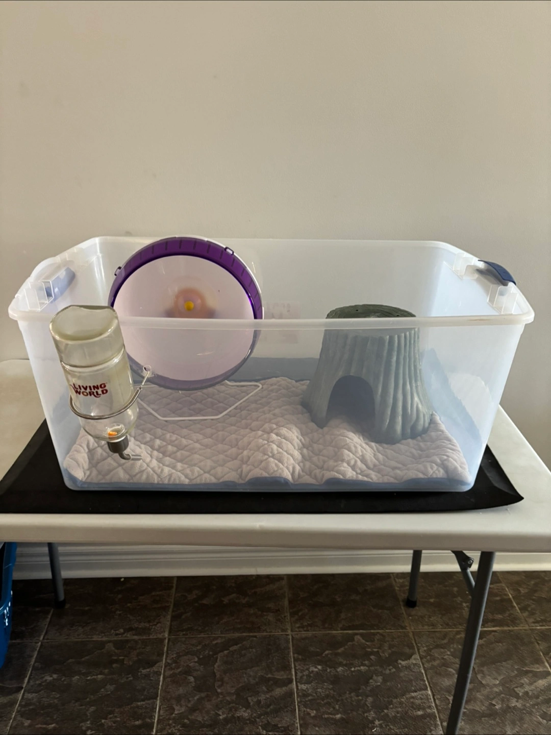 Water bottle, food bowl, wheel, hutch, 1/2 bag shavings, blankets(including water proof), fleece blankets, snuggle pouches, bathtub and brush, carrier)