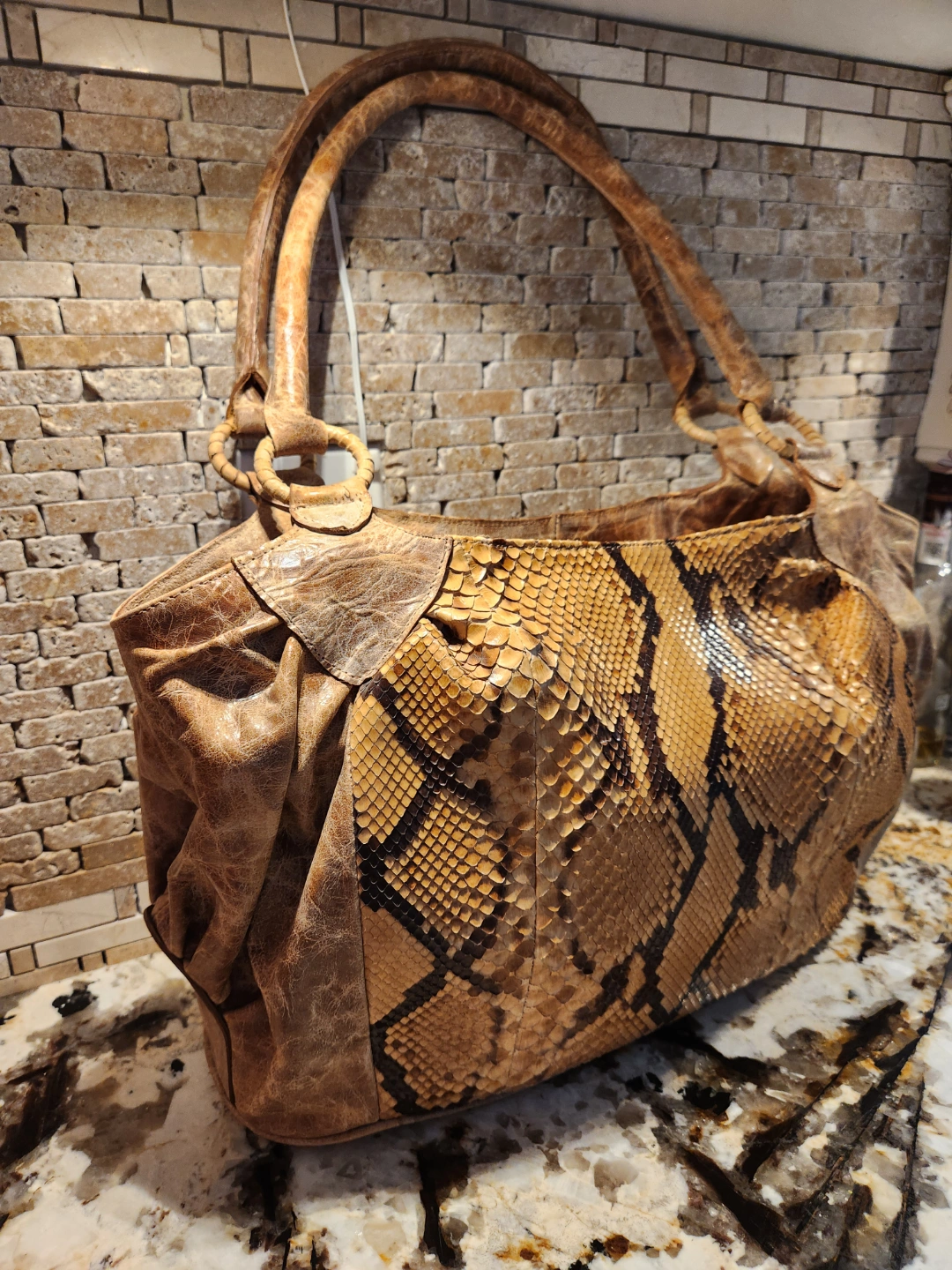31Brand new Gorgeous handbag with the Certificate of Authenticity. Features PYTHON snakeskin and leather. Double handles. Interior zippered pocket. Unique design.