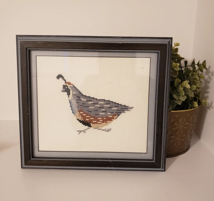 Framed Cross-Stitch Quail Artwork